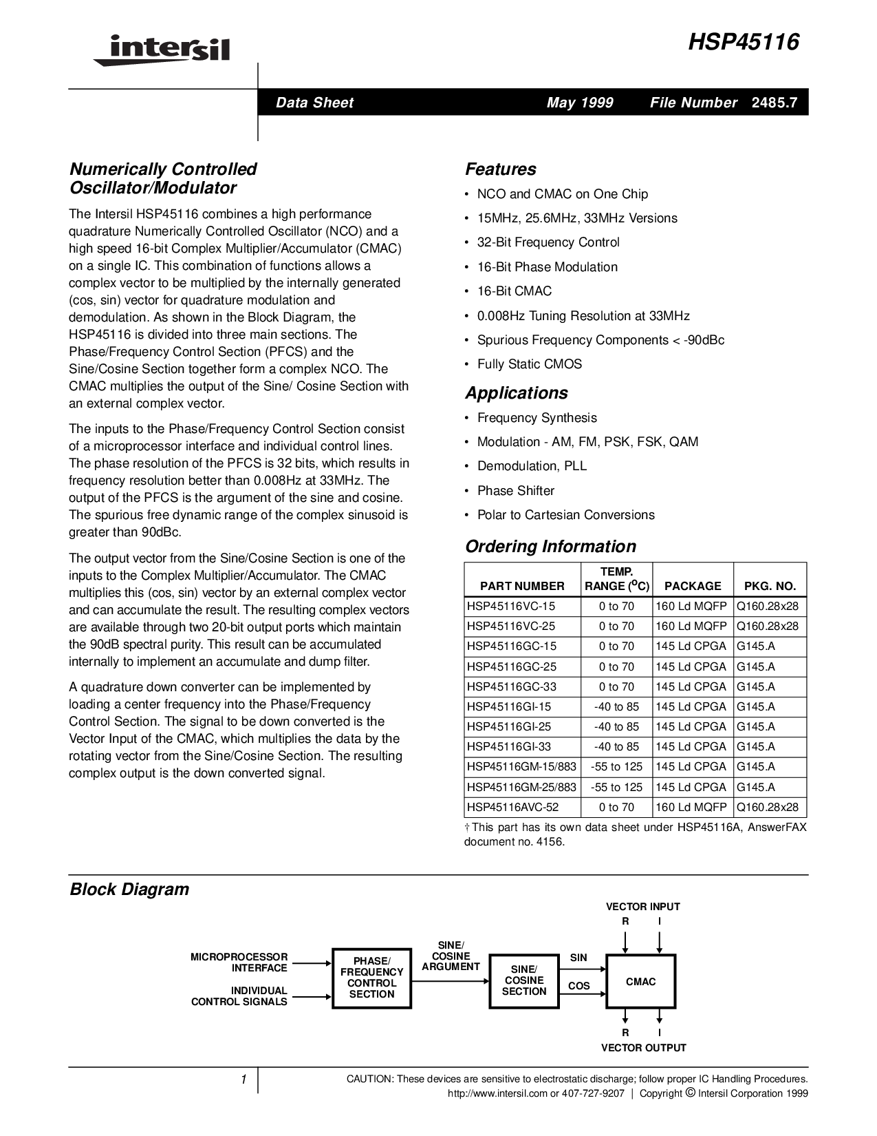 这 intersil hsp45116 联合收割机 一个 高 业绩