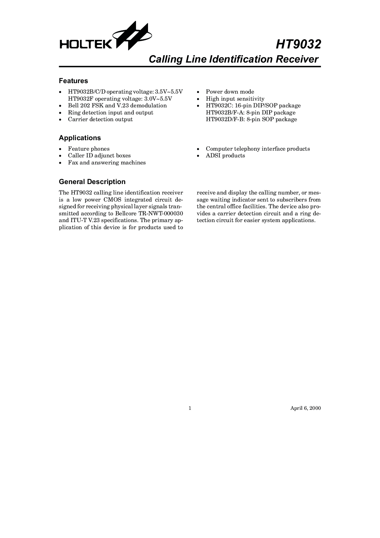 ht9032b/c/d 操作 电压: 3.5v~5.5v