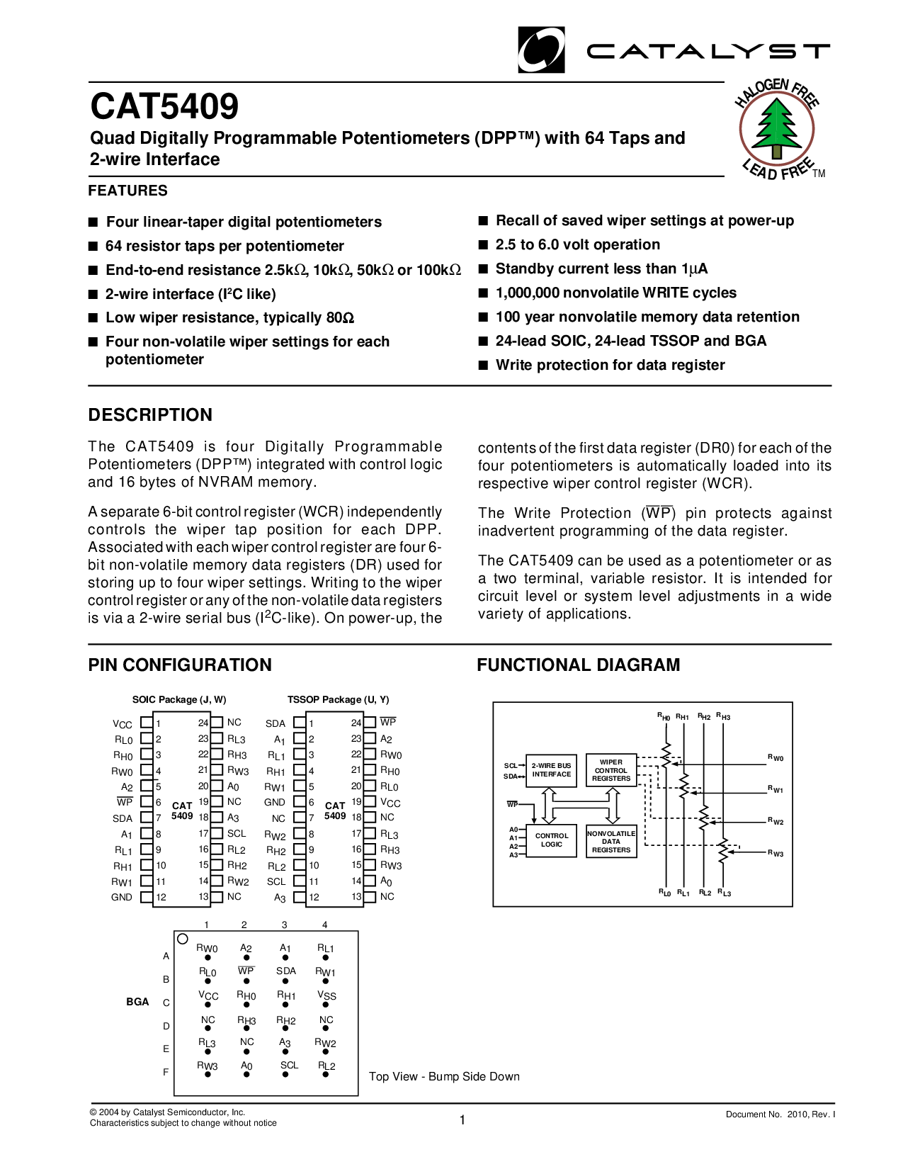 浏览型号CAT5409UI-50-TE13的Datasheet PDF文件第2页