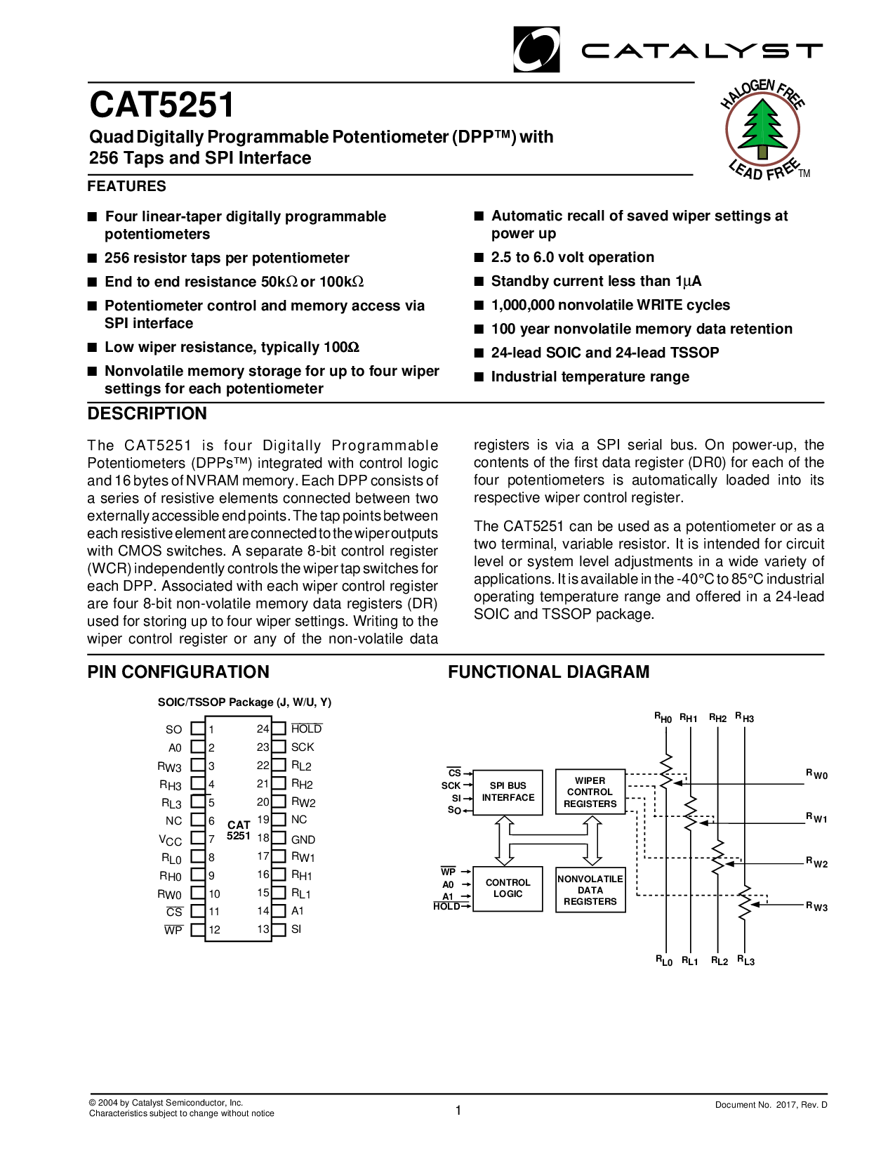 浏览型号CAT5251UI-50TE13的Datasheet PDF文件第2页