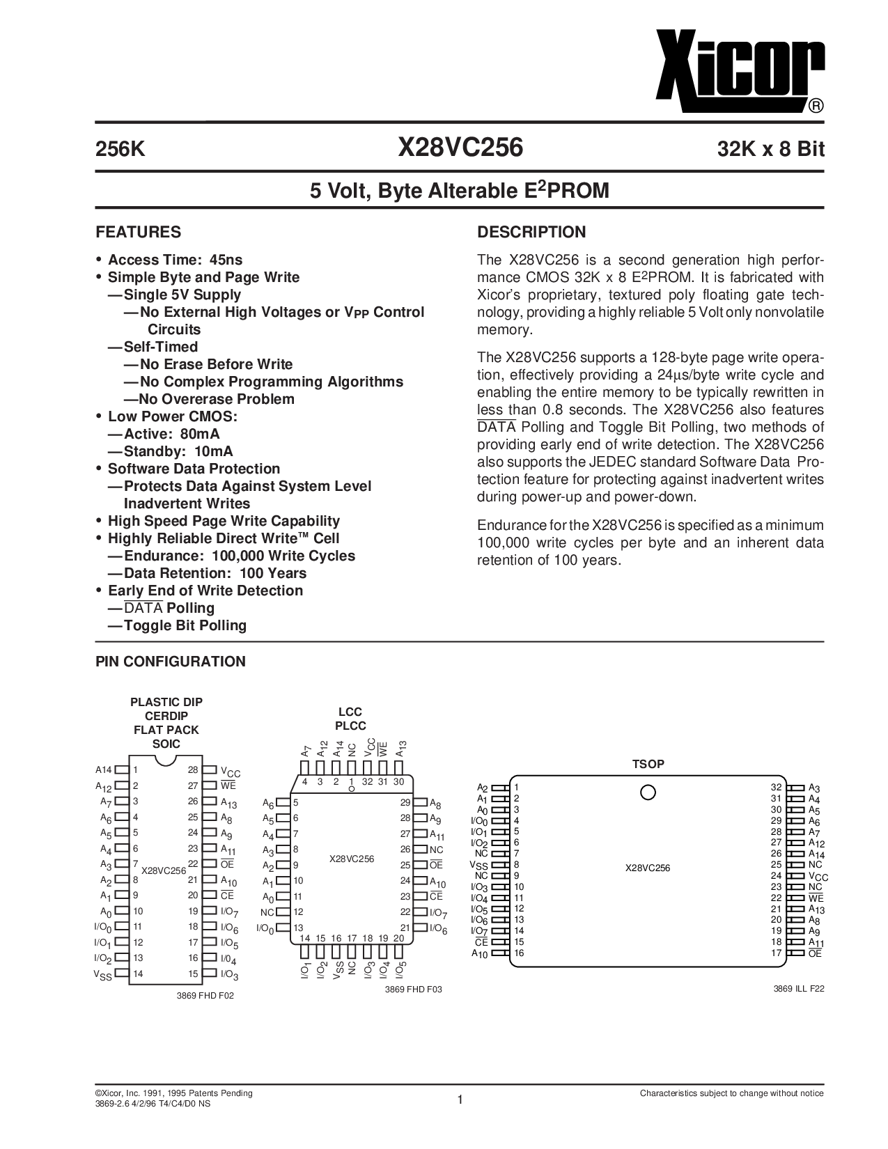 浏览型号X28VC256PI-90的Datasheet PDF文件第2页