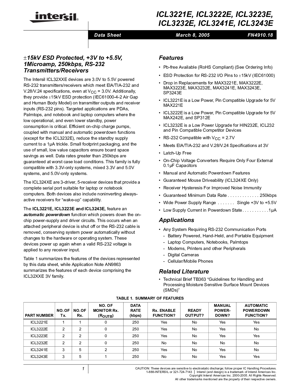 浏览型号ICL3232EIA-T的Datasheet PDF文件第5页