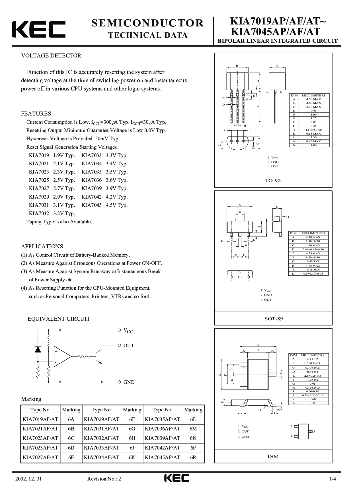 kia7019 1.9v 典型值 kia7033 3.3v 典型值