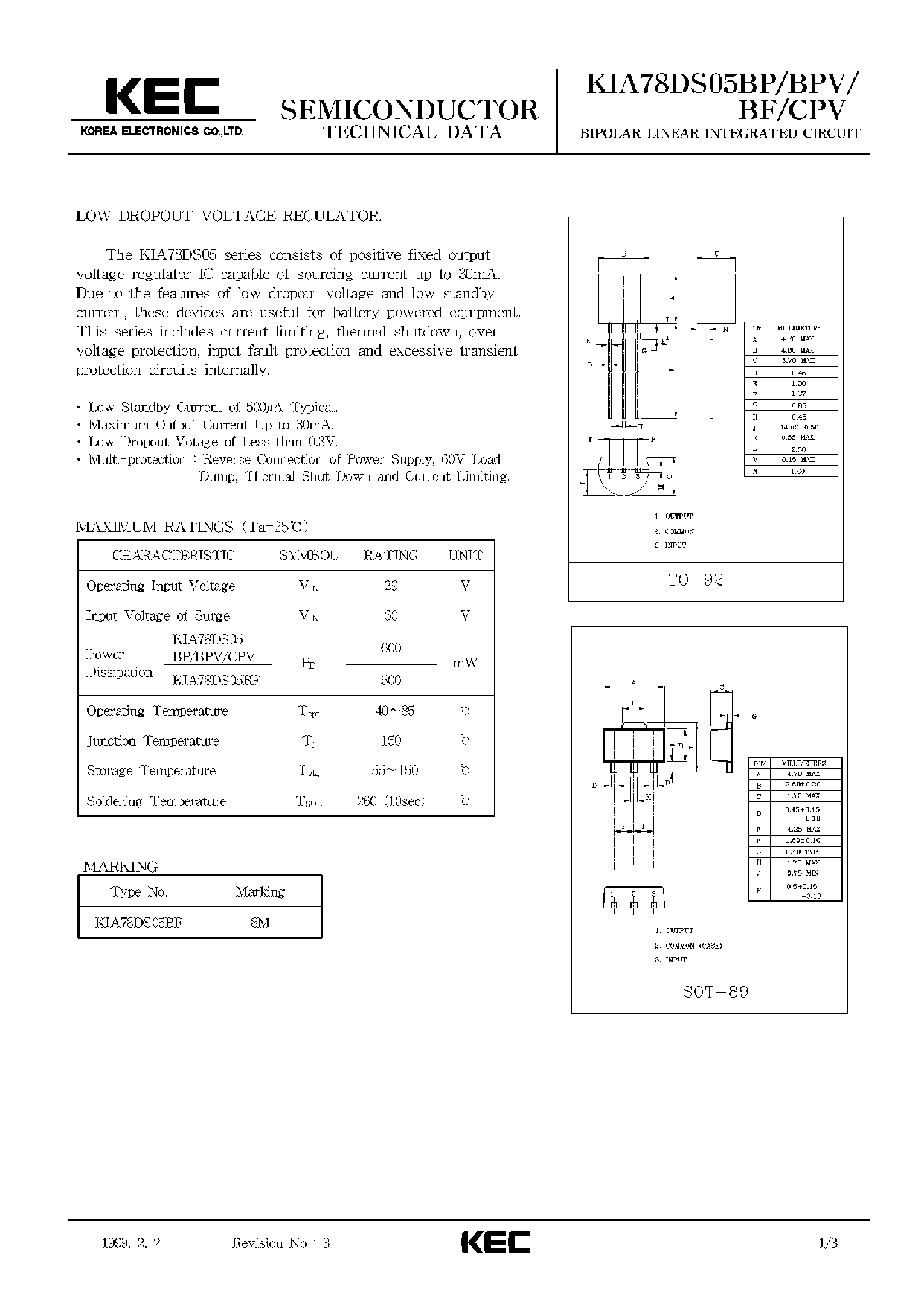 BIPOLAR LINEAR INTEGRATED CIRCUIT (LOWDROPOUT VOLTAGE REGULATOR)
