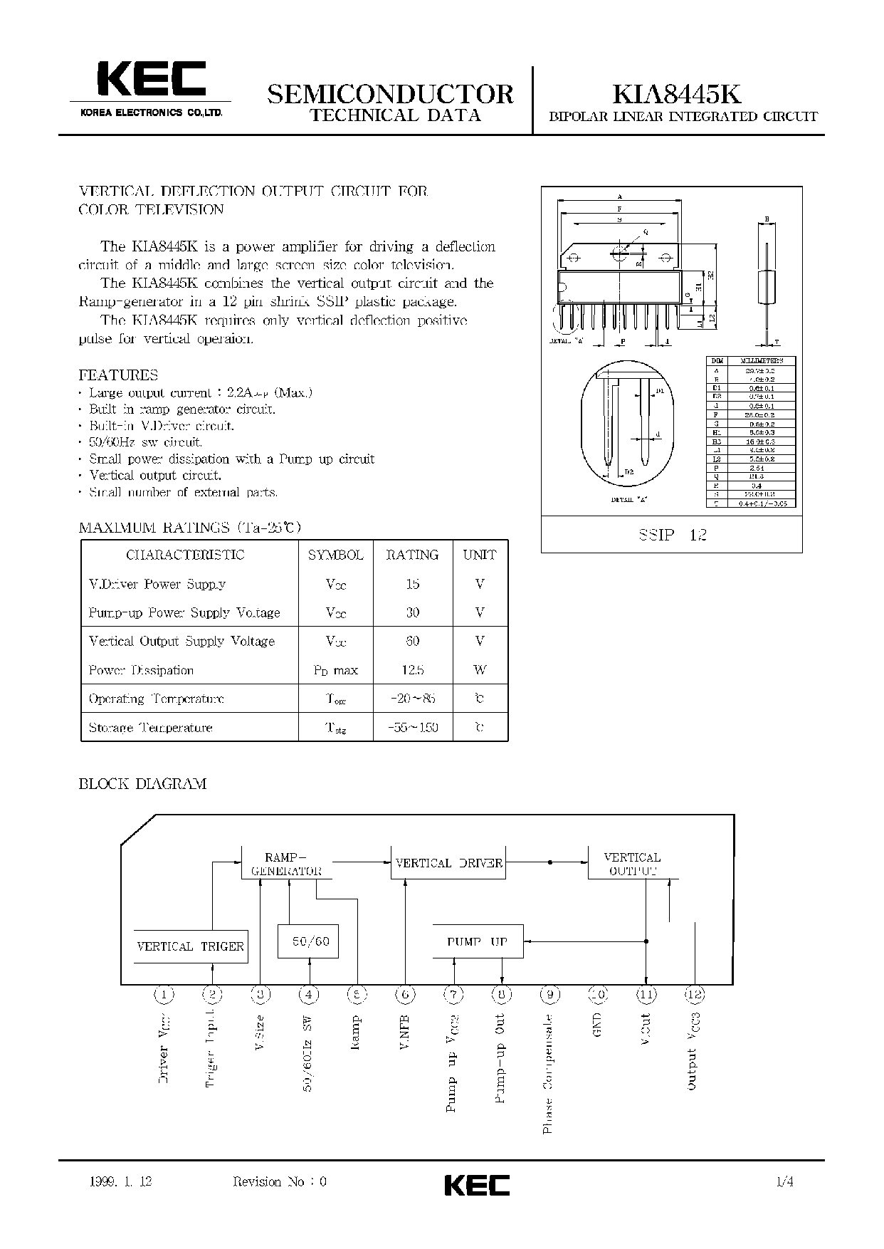 BIPOLAR LINEAR INTEGRATED CIRCUIT (VERTICAL DEFLECTION OUTPUT CIRCUIT FOR COLOR TELEVISION)