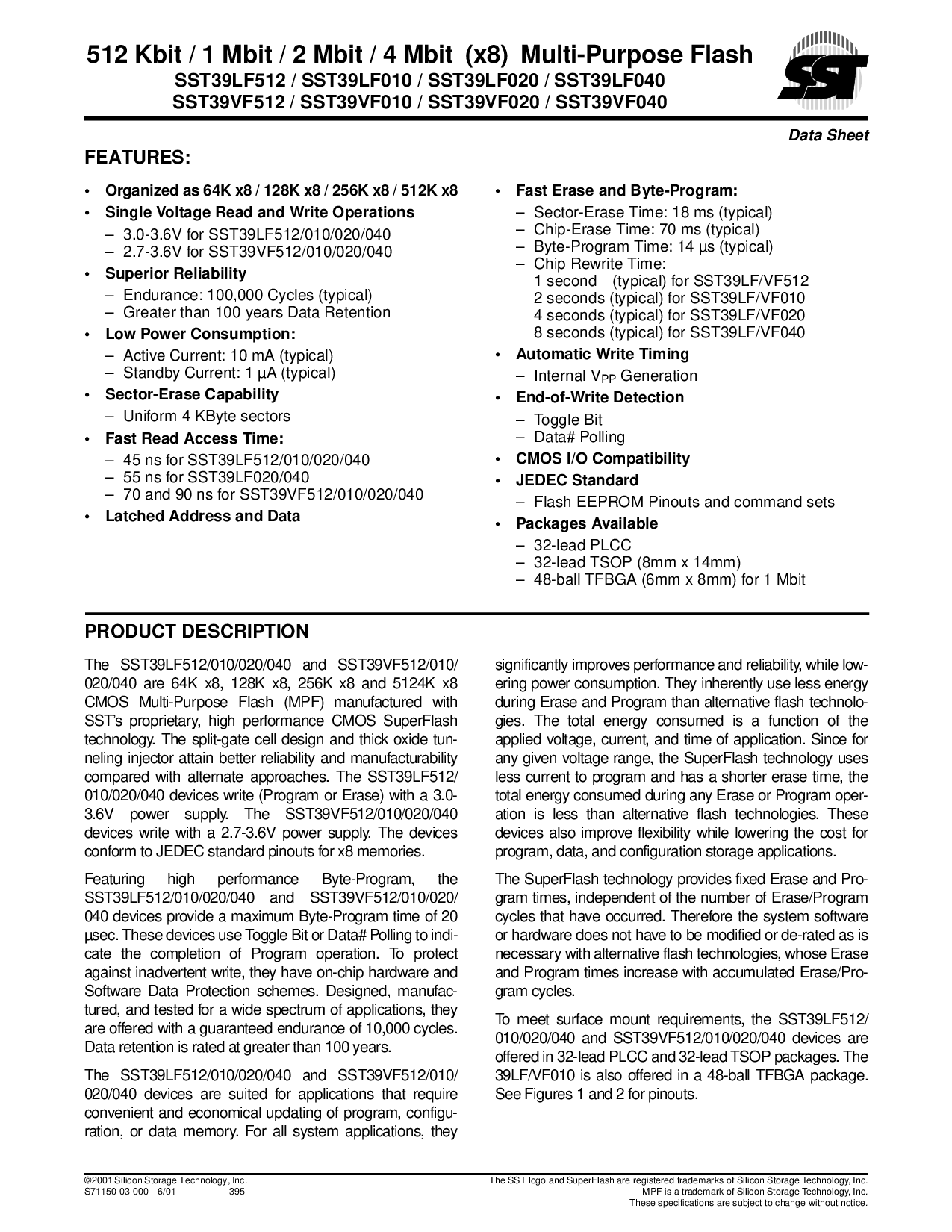 sst39vf512 / sst39vf010 / sst39vf020 / sst39vf040