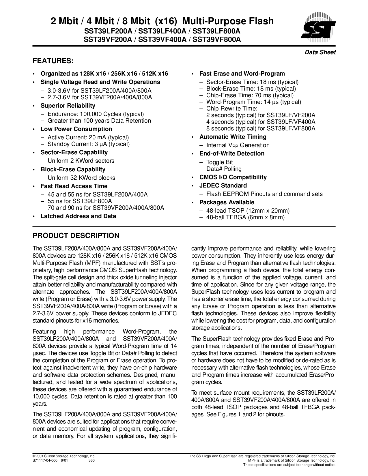 浏览型号SST39VF400A-45-4I-B3K的Datasheet PDF文件第2页