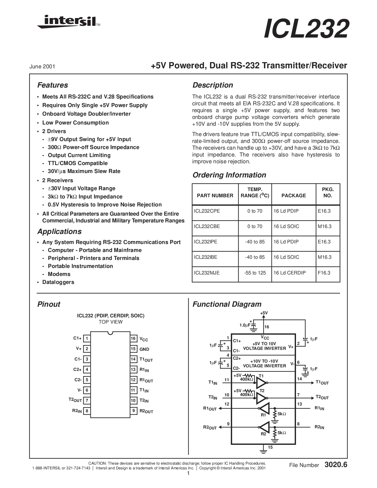 浏览型号ICL232CBE的Datasheet PDF文件第6页
