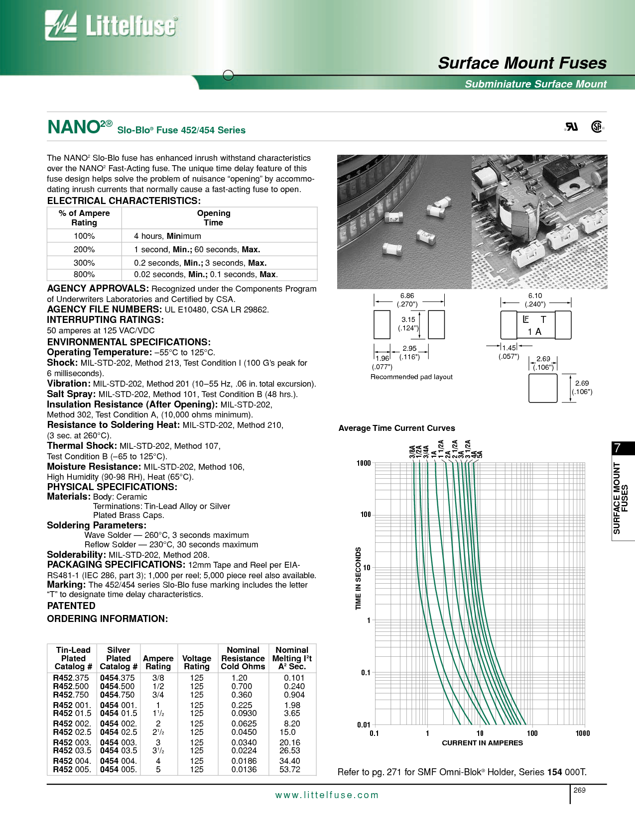 这 452/454 系列 slo-blo 保险丝 标记 包括 这 信函