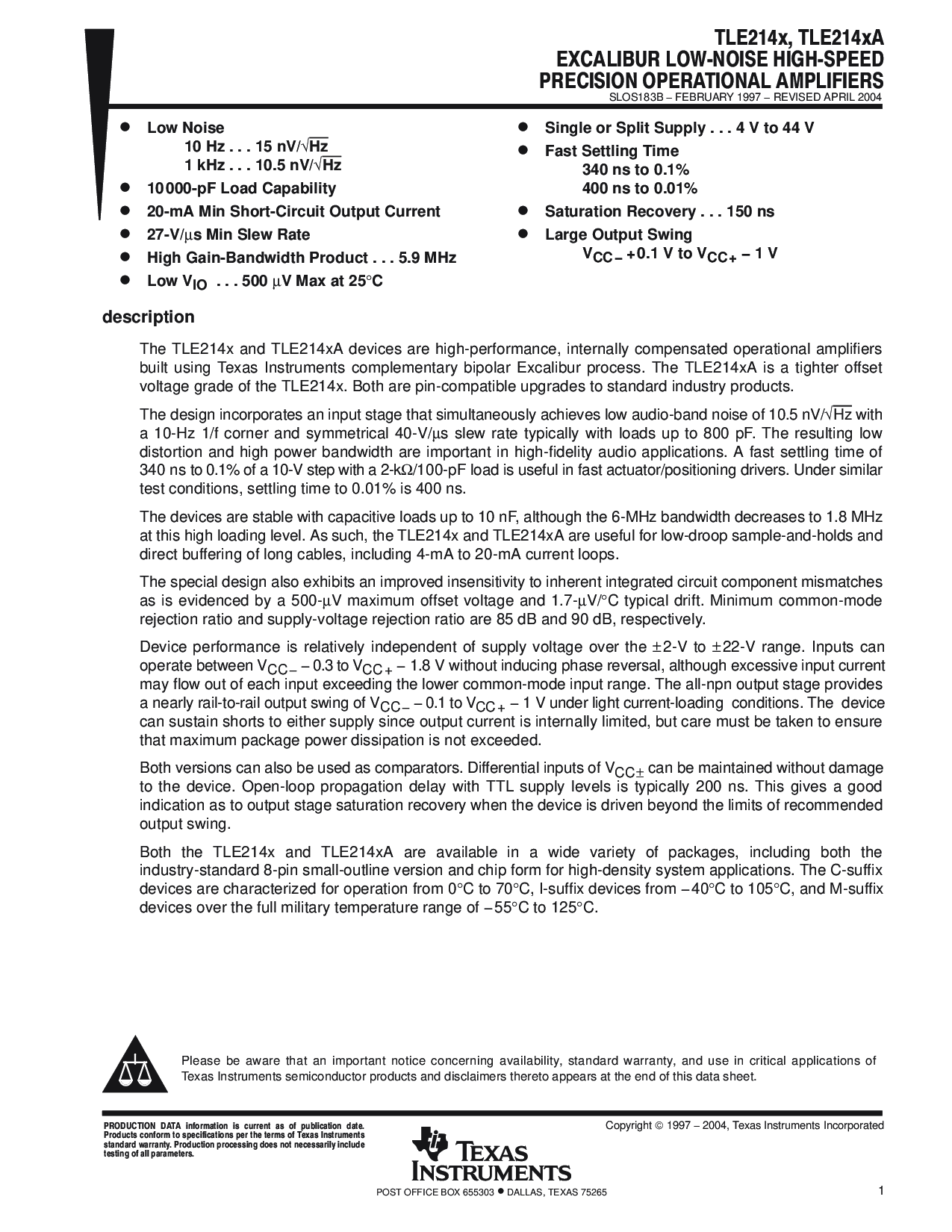 已建成 使用 德州 仪器仪表 互补 双极性 excalibur 流程. 这 tle214xa 是 一个 更紧 偏移量