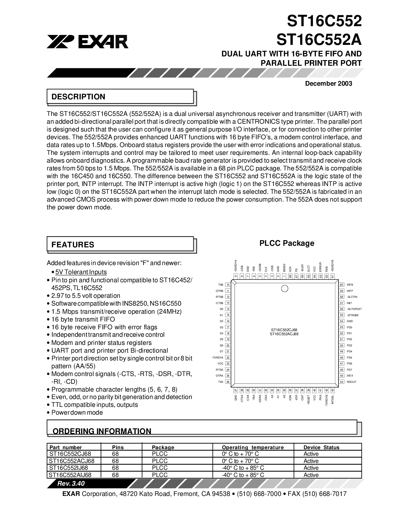浏览型号ST16C552IJ68的Datasheet PDF文件第3页