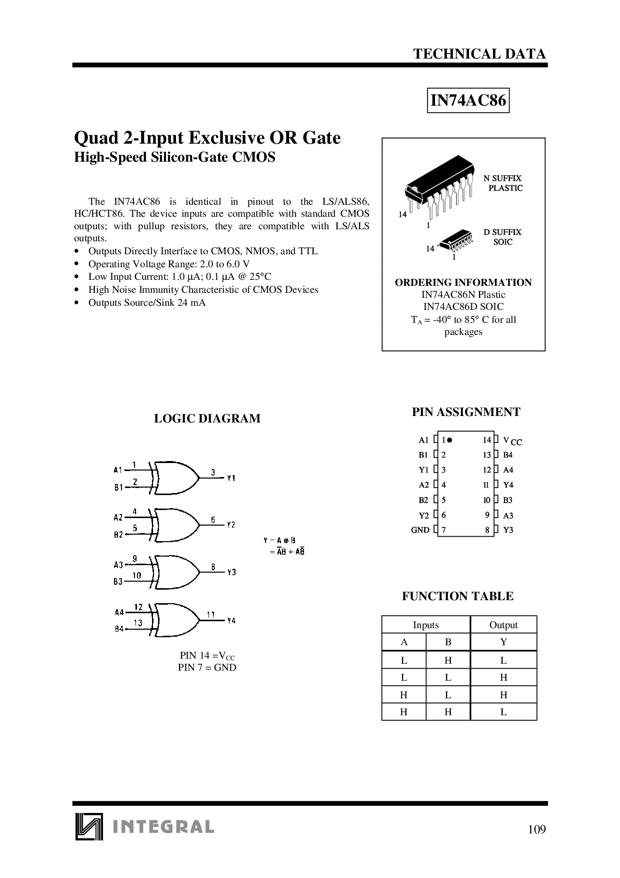 Quad 2-Input Exclusive OR Gate High-Speed Silicon-Gate CMOS