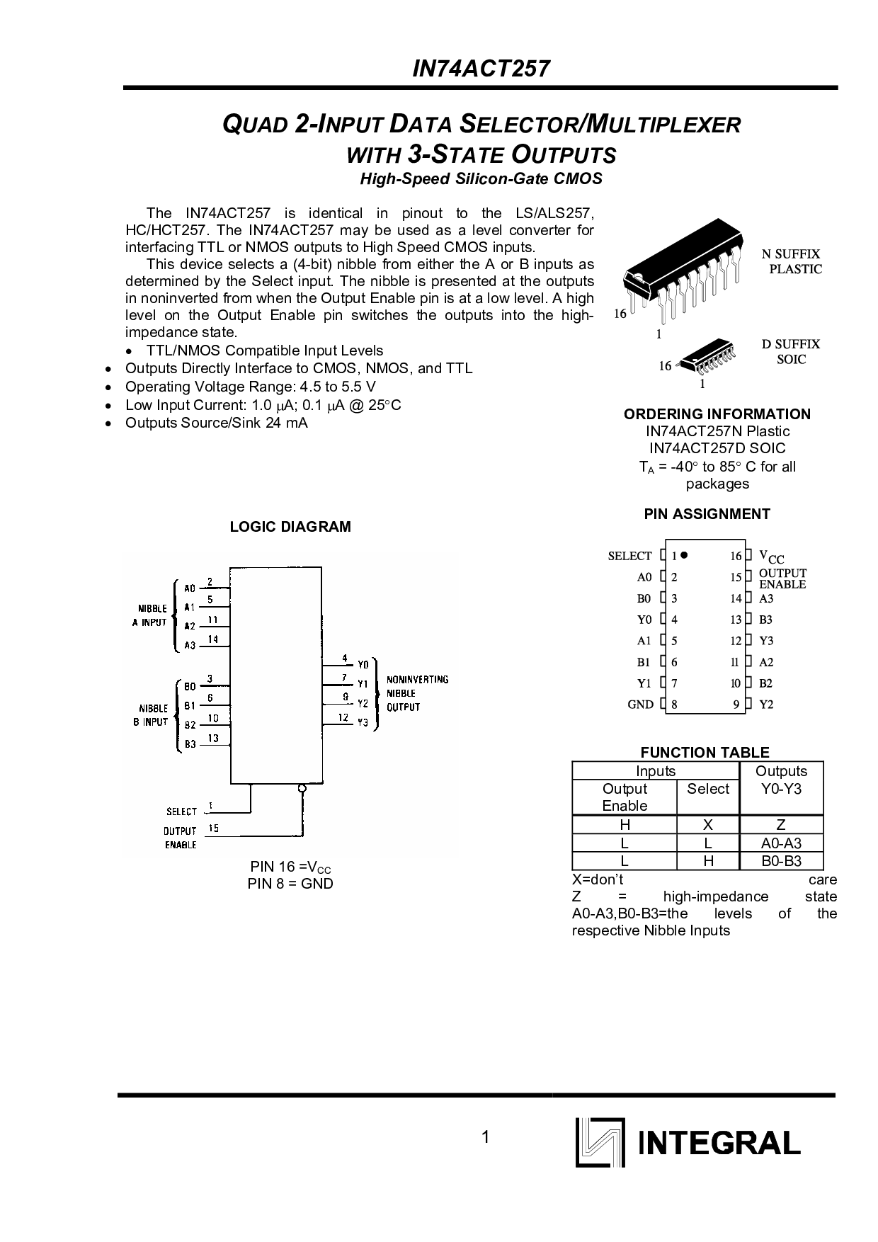 浏览型号IN74ACT257的Datasheet PDF文件第2页