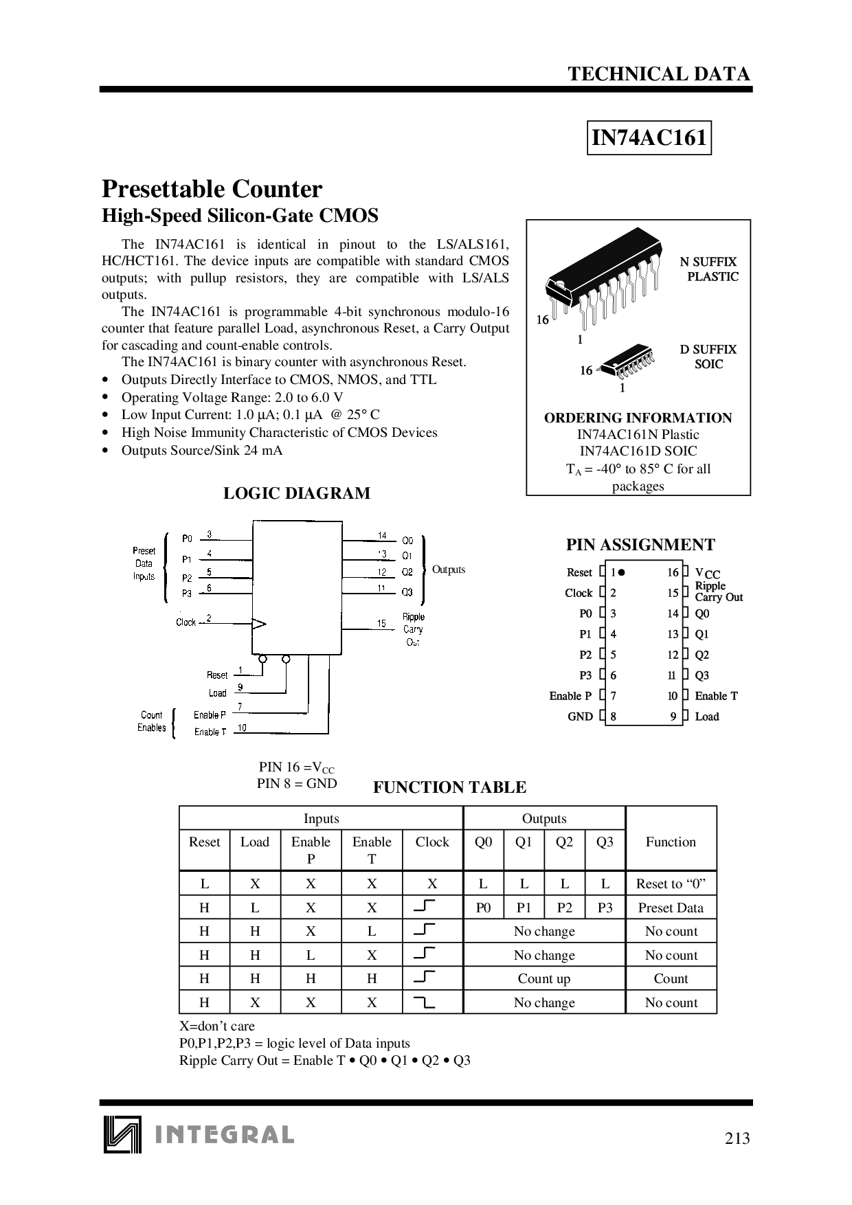 这 in74ac161 是 二进制 计数器 与 异步 重置.