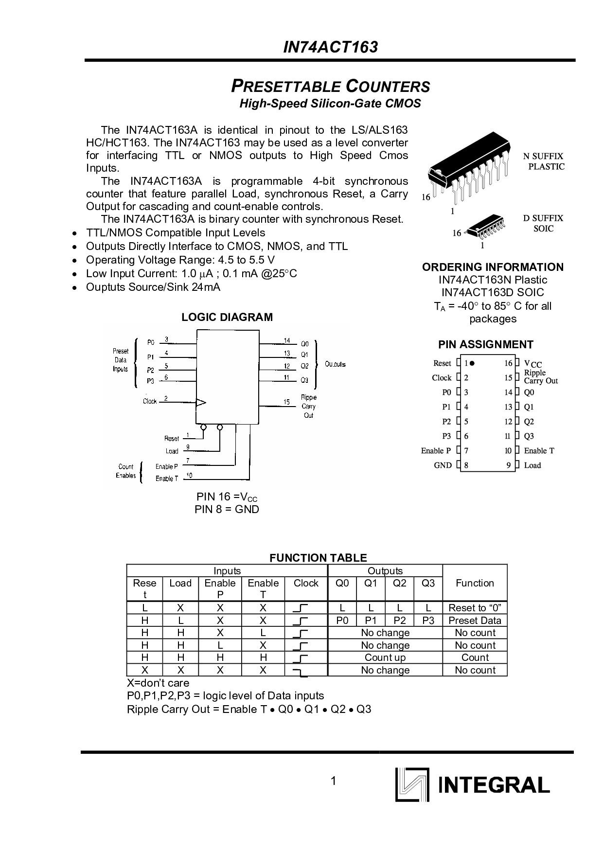 浏览型号IN74ACT163的Datasheet PDF文件第3页