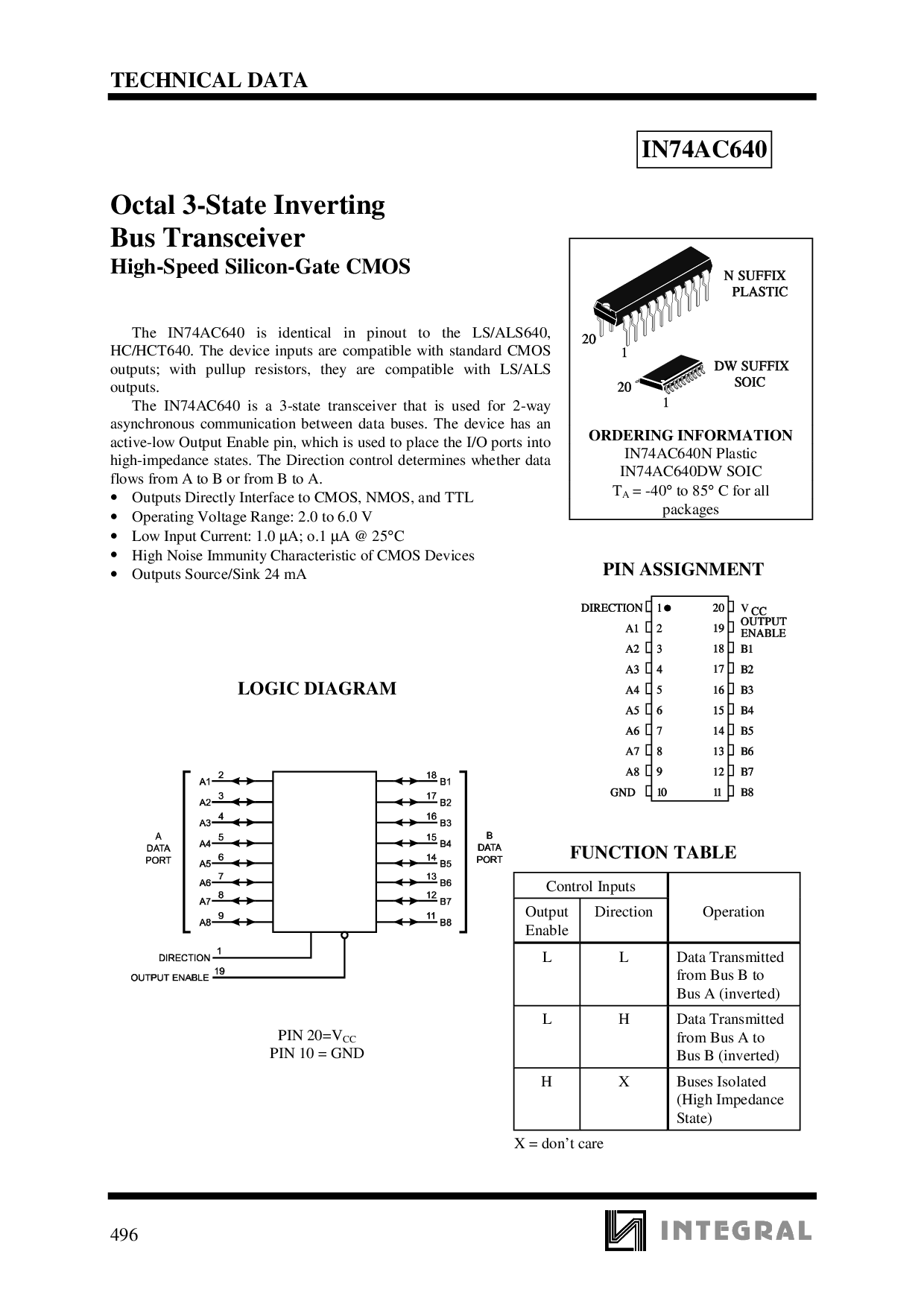 这 in74ac640 是 一个 3-州 收发器 那 是 已使用 用于 2-方式
