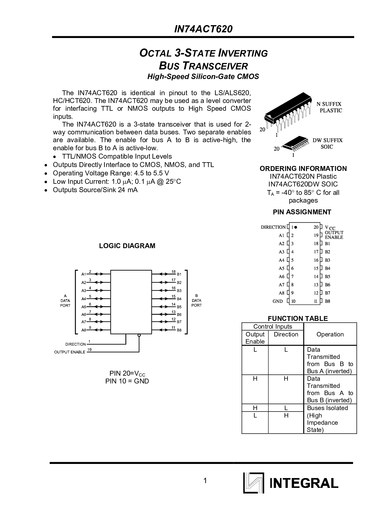 这 in74act620 是 一个 3-州 收发器 那 是 已使用 用于 2-