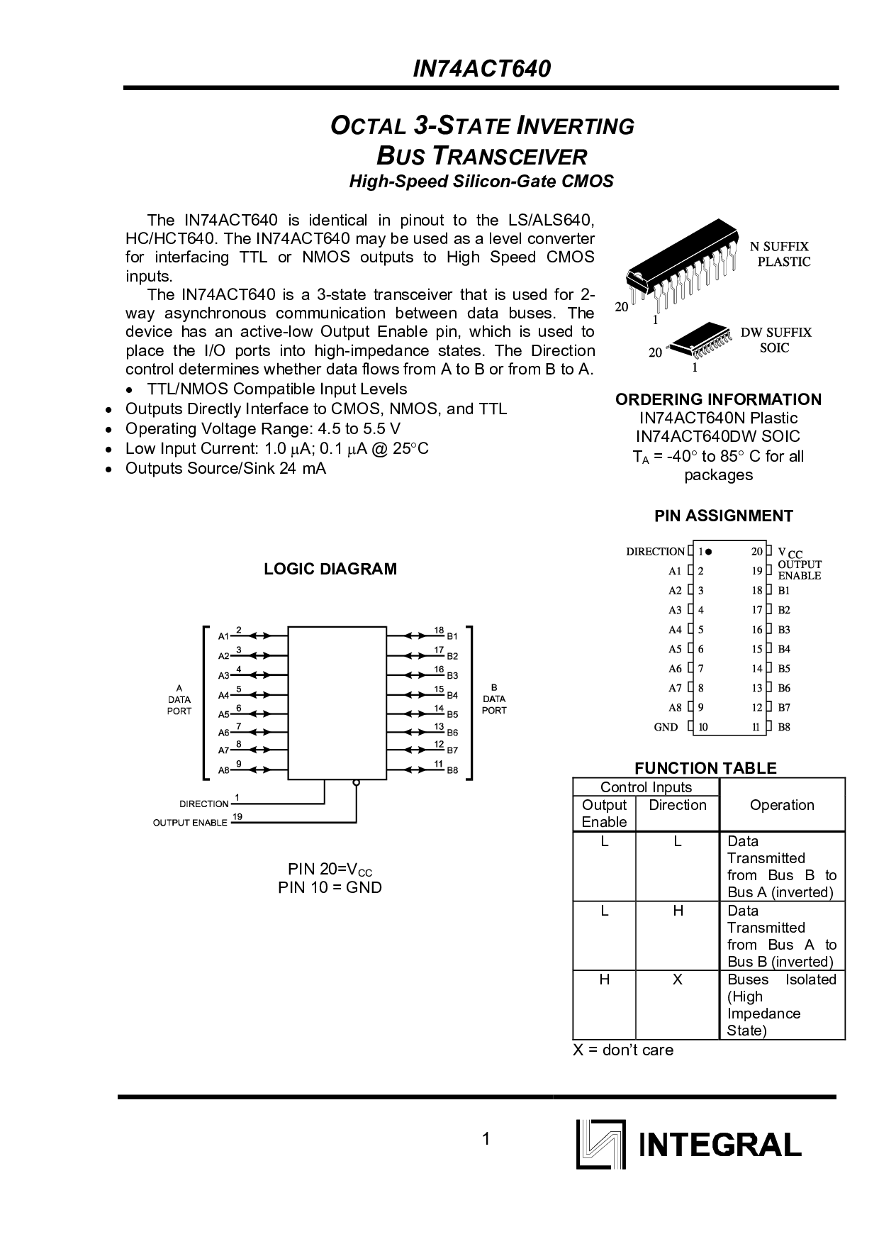这 in74act640 是 一个 3-州 收发器 那 是 已使用 用于 2-