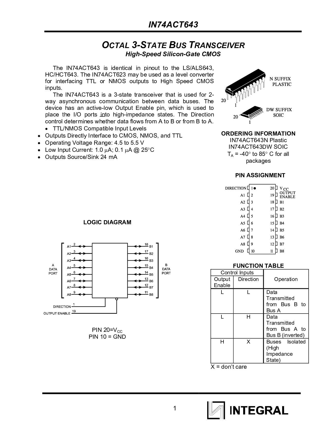 这 in74act643 是 一个 3-州 收发器 那 是 已使用 用于 2-