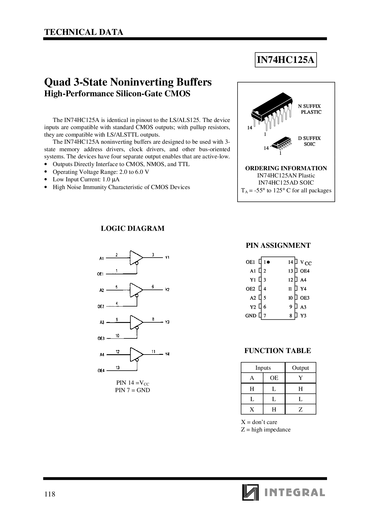浏览型号IN74HC125AD的Datasheet PDF文件第2页