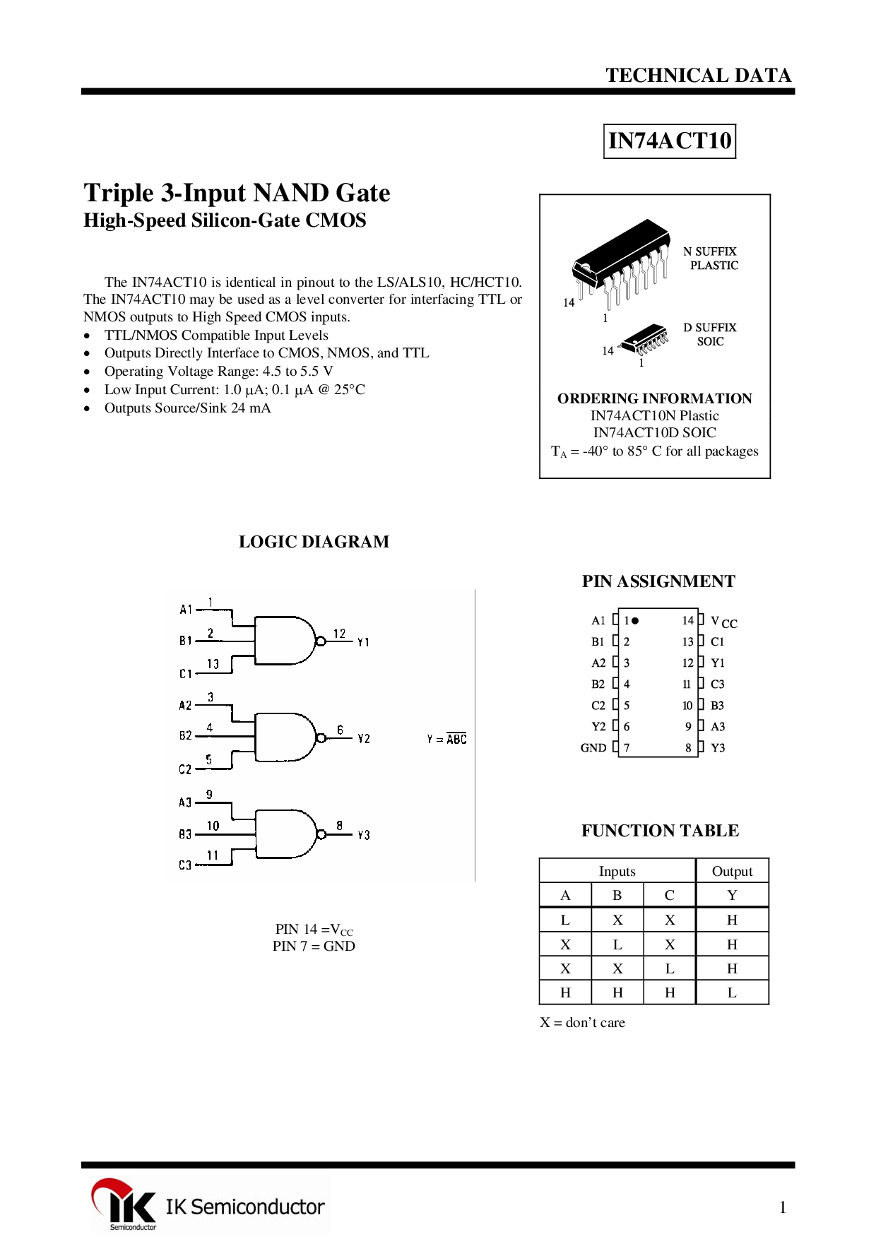 浏览型号IN74ACT10N的Datasheet PDF文件第3页
