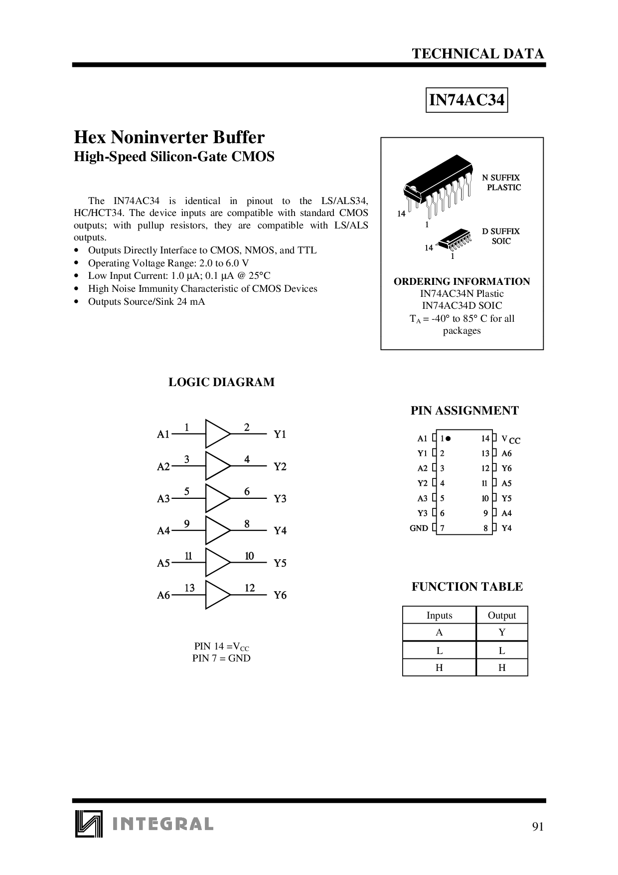Hex Noninverter Buffer High-Speed Silicon-Gate CMOS