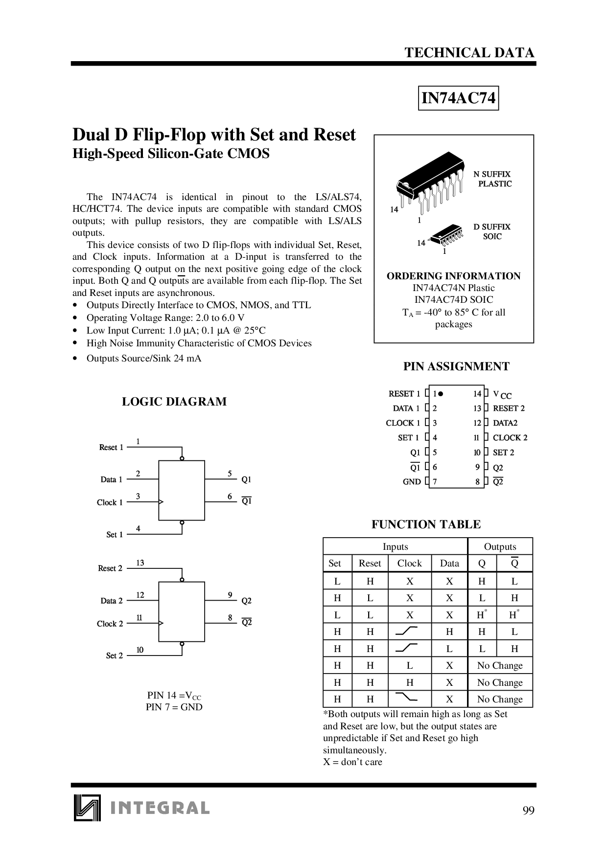 浏览型号IN74AC74的Datasheet PDF文件第2页