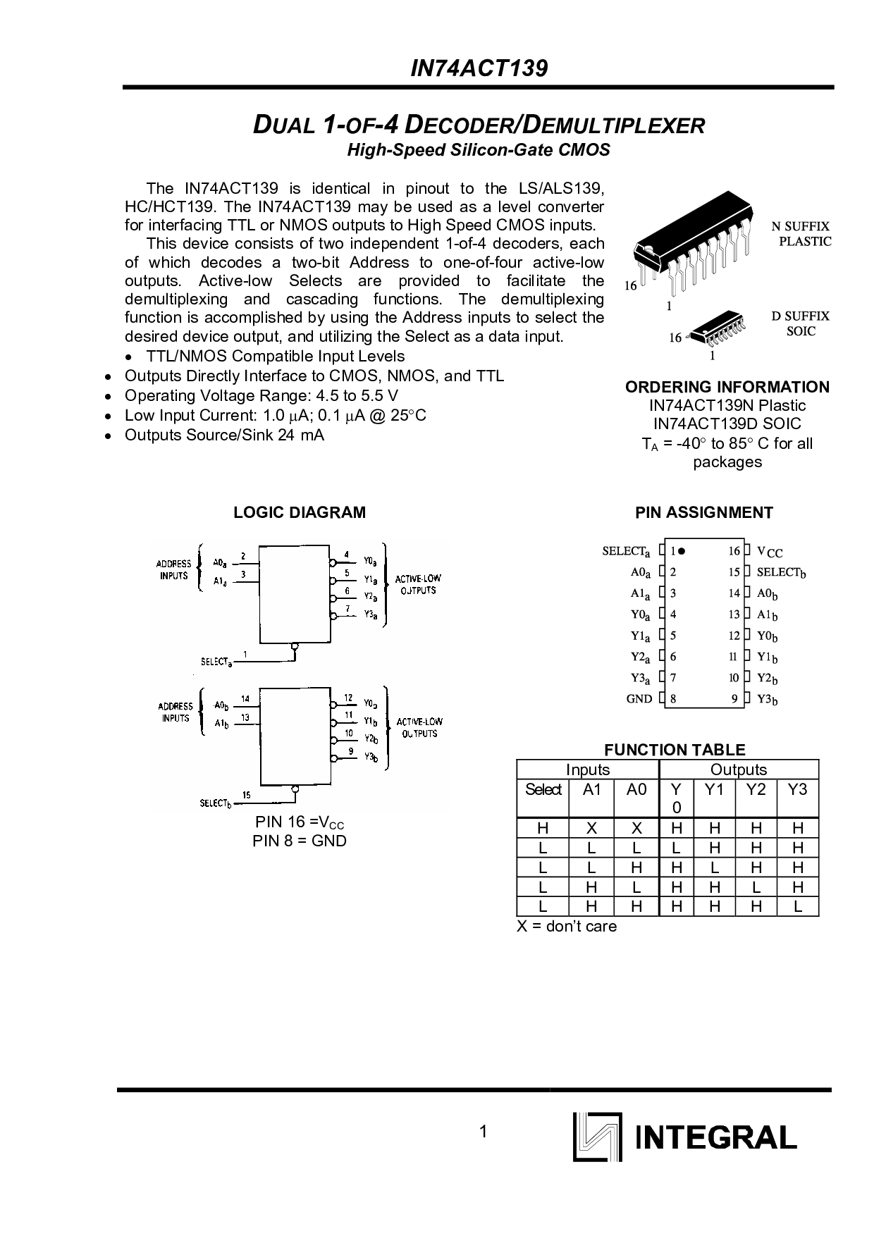 hc/hct139. 这 in74act139 将 是 已使用 作为 一个 水平 变频器
