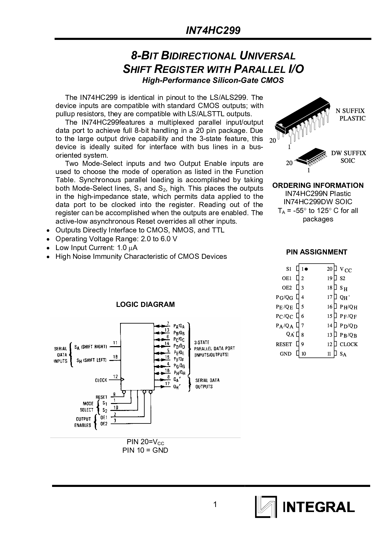 浏览型号IN74HC299N的Datasheet PDF文件第2页