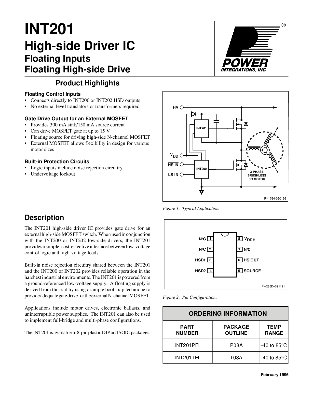 这 int201 高侧 驾驶员 集成电路 提供 闸门 驱动器 用于 一个