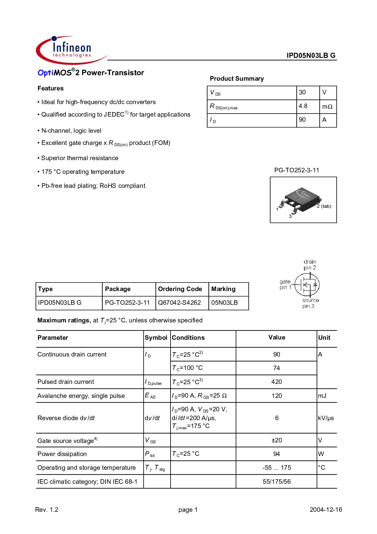 ipd05n03lb g pg-to252-3-11 q67042-s4262 05N03LB