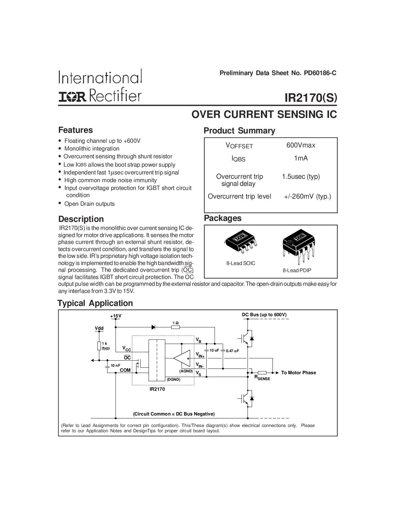 ir2170(s) 是 这 单片 结束 电流 感应 集成电路 de-