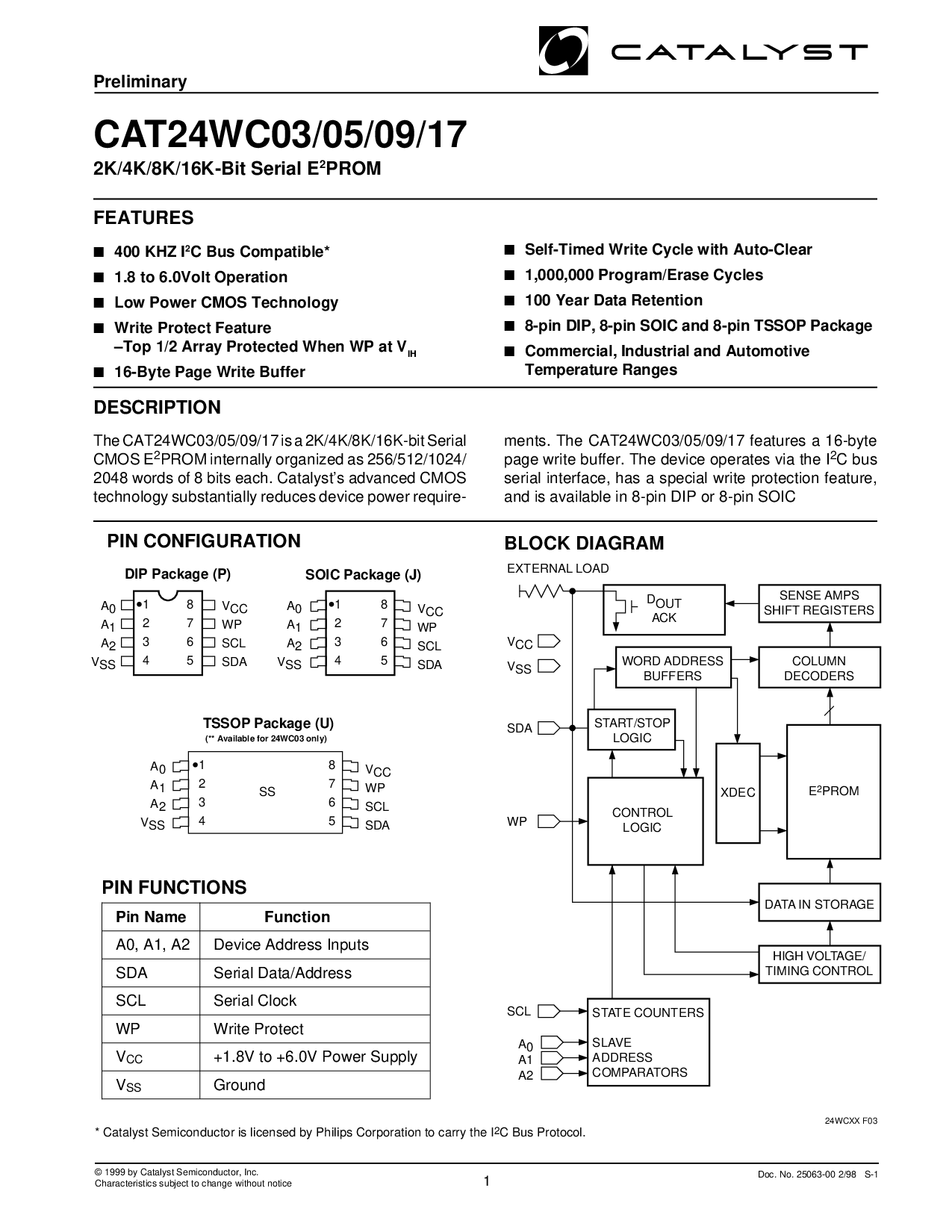 浏览型号CAT24WC17PI-TE13的Datasheet PDF文件第3页