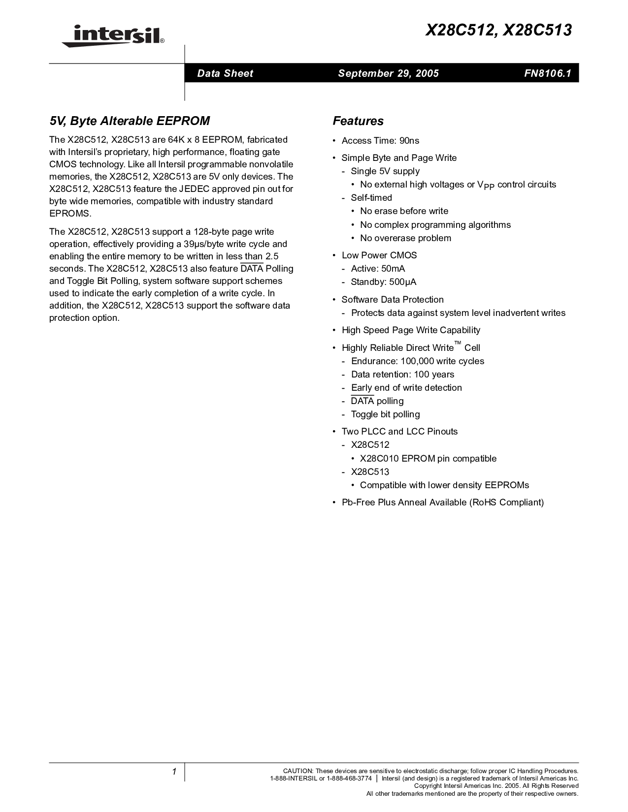 浏览型号X28C513J-20T1的Datasheet PDF文件第2页