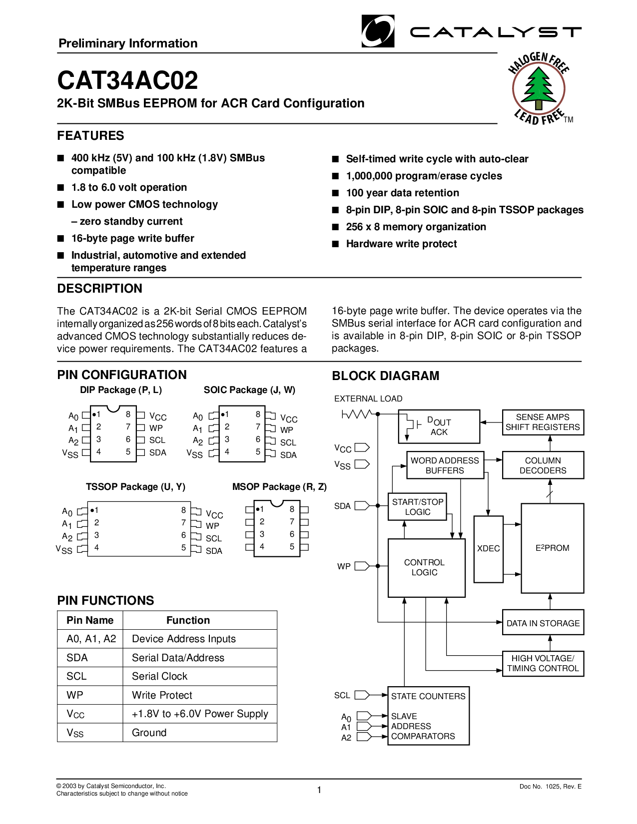 浏览型号CAT34AC02JI-1.8TE13的Datasheet PDF文件第2页