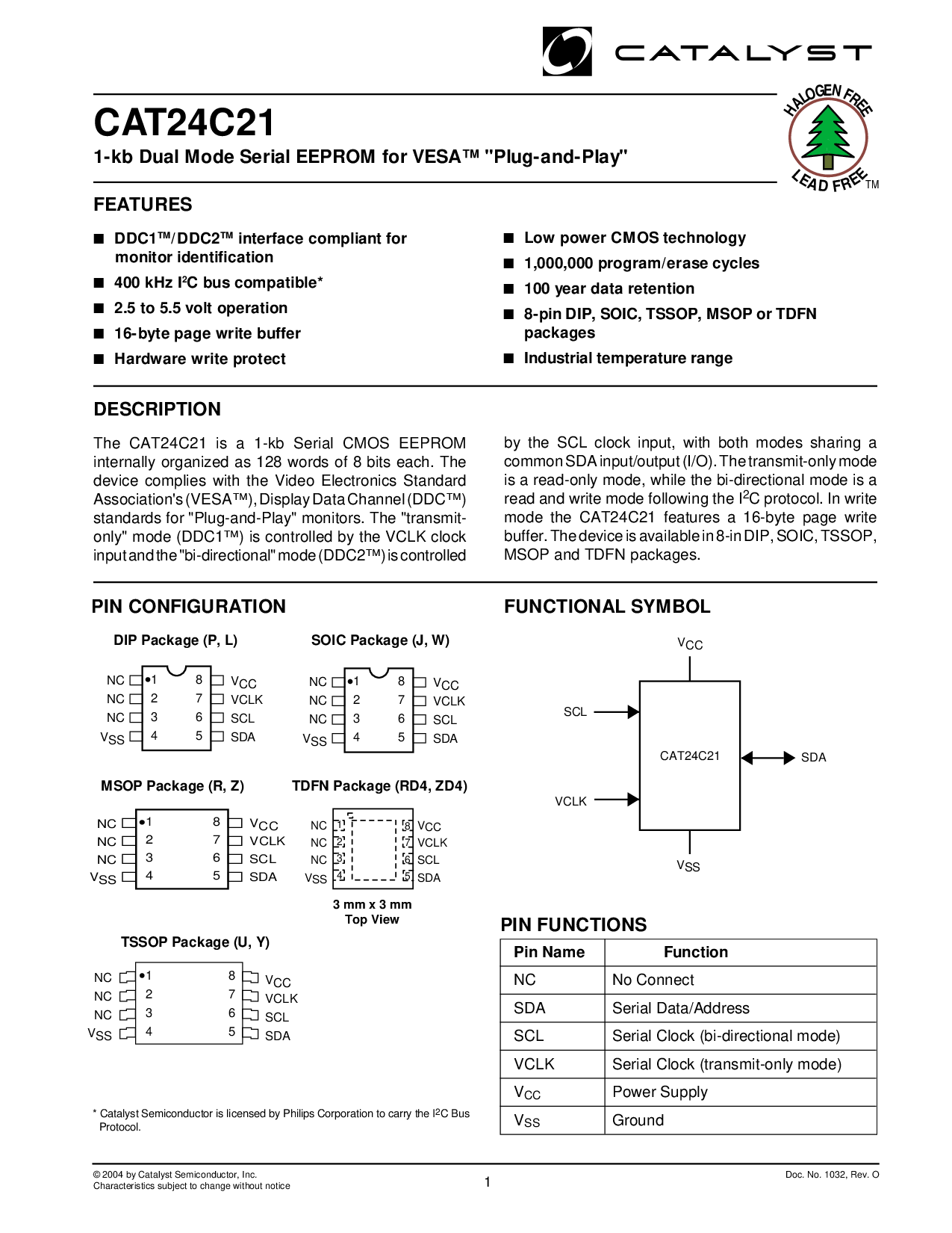 这 cat24c21 是 一个 1-kb 串行 cmos 可擦可编程只读存储器
