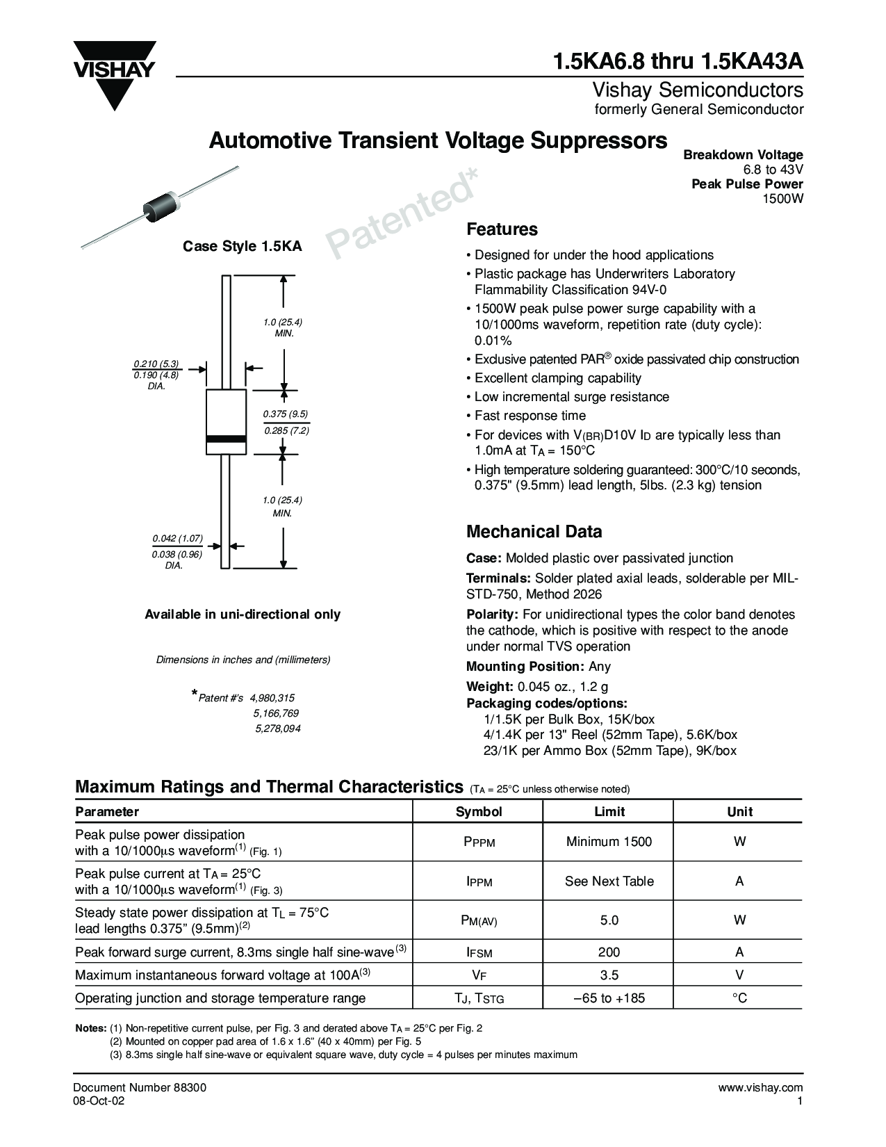 峰值 前进 浪涌 电流, 8.3ms 单独 一半 正弦波