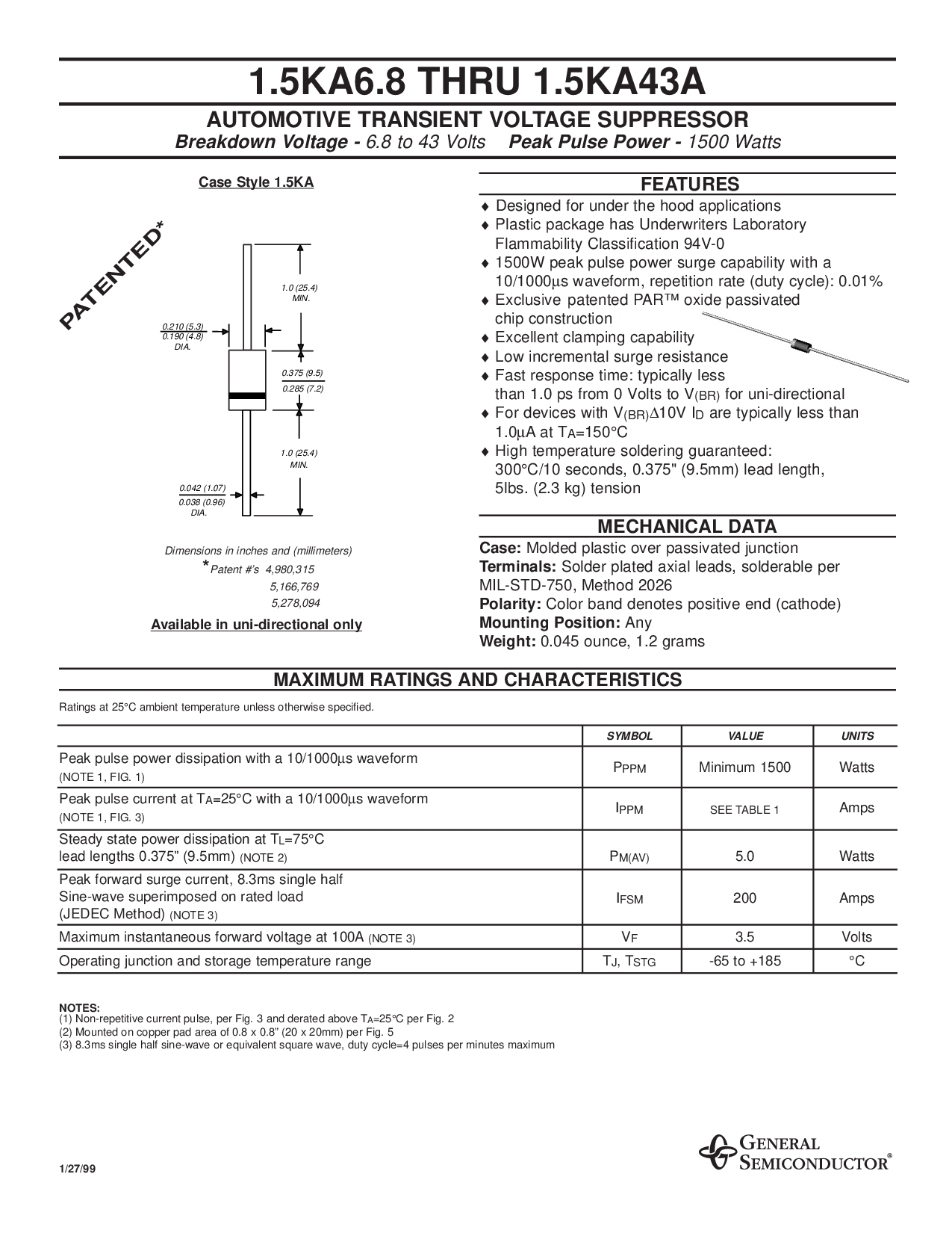 浏览型号1.5KA6.8A的Datasheet PDF文件第3页