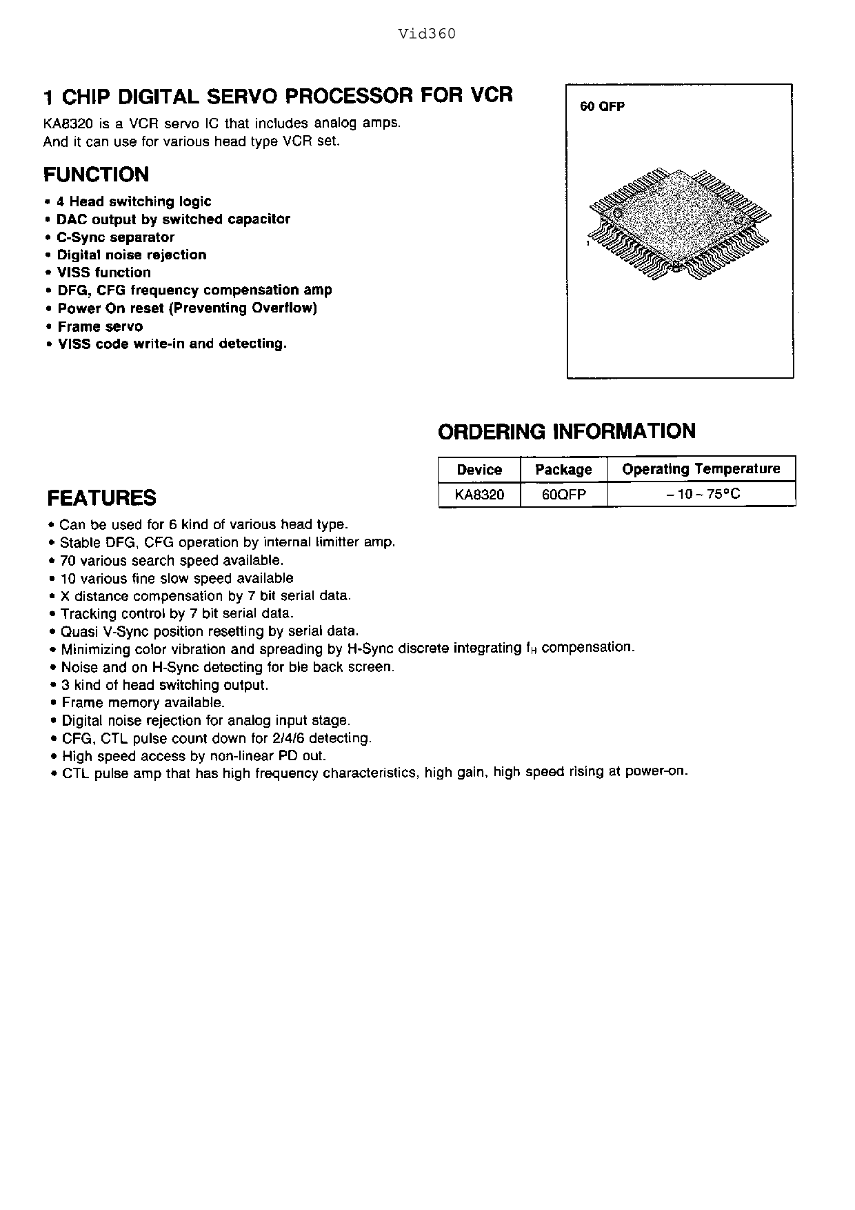 1 CHIP DIGITAL SERVO PROCESSOR FOR VCR