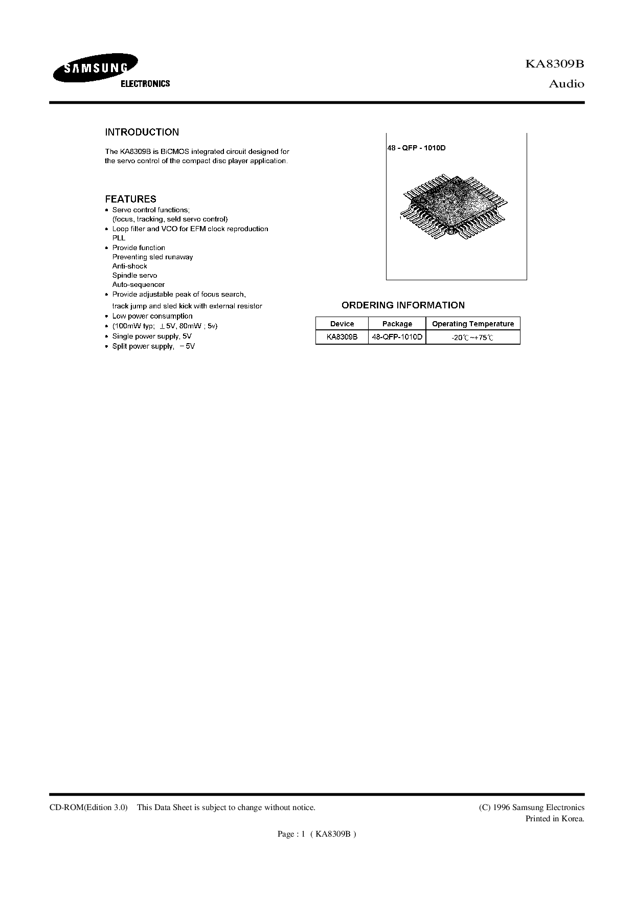 光盘-rom(版本 3.0) 这个 数据 工作表 是 主题 至 变更 无 通知. (c) 1996 samsung 电子产品