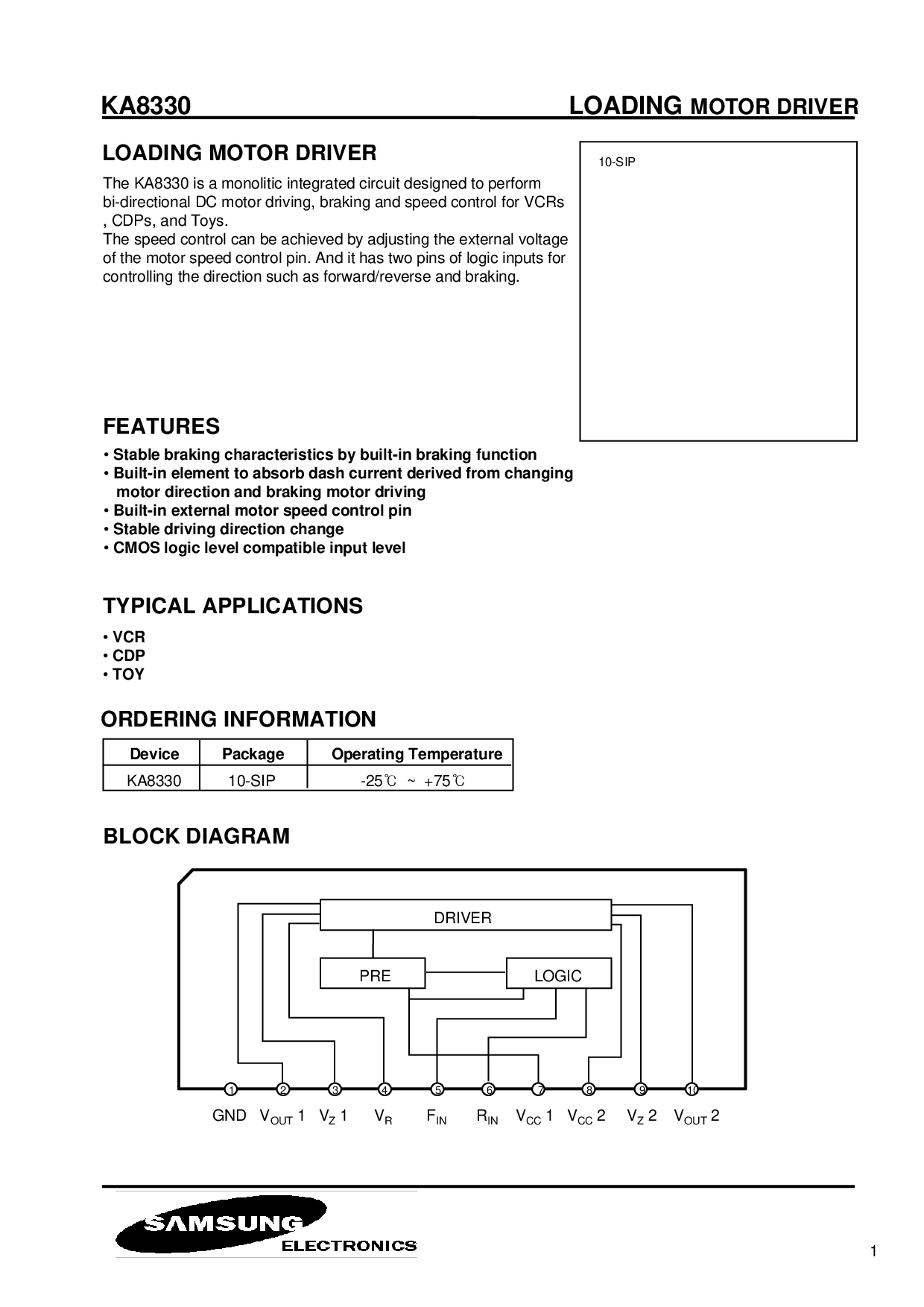 这 ka8330 是 一个 monolitic 综合 电路 设计 至 执行