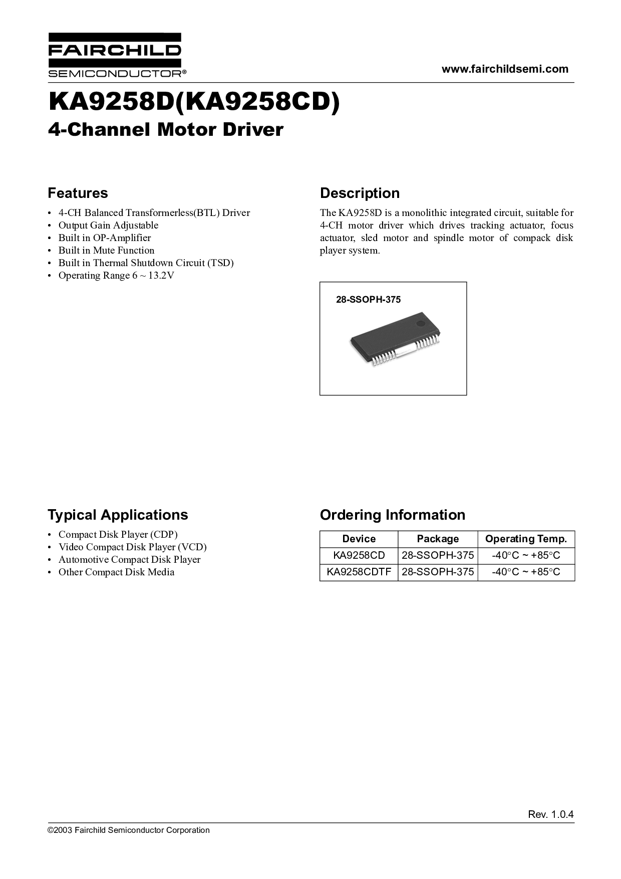 这 ka9258d 是 一个 单片 综合 电路, 适合 用于