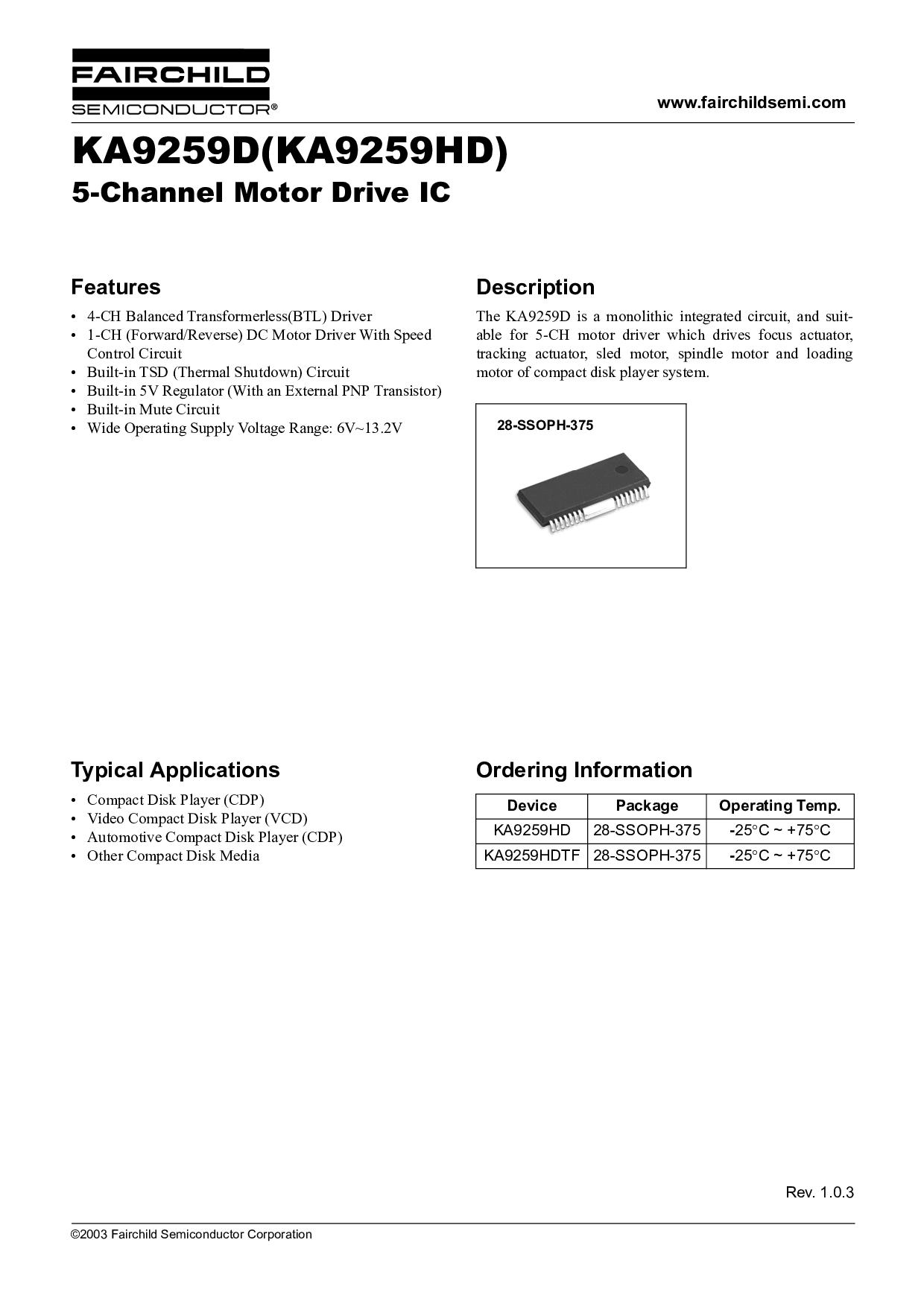 这 ka9259d 是 一个 单片 综合 电路, 和 套装-