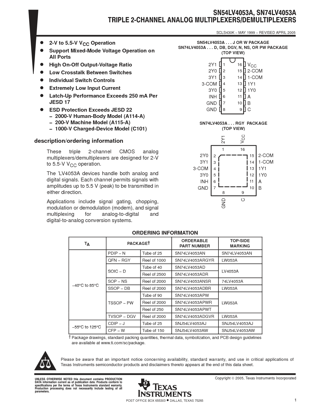 浏览型号SN74LV4053ADBRE4的Datasheet PDF文件第2页