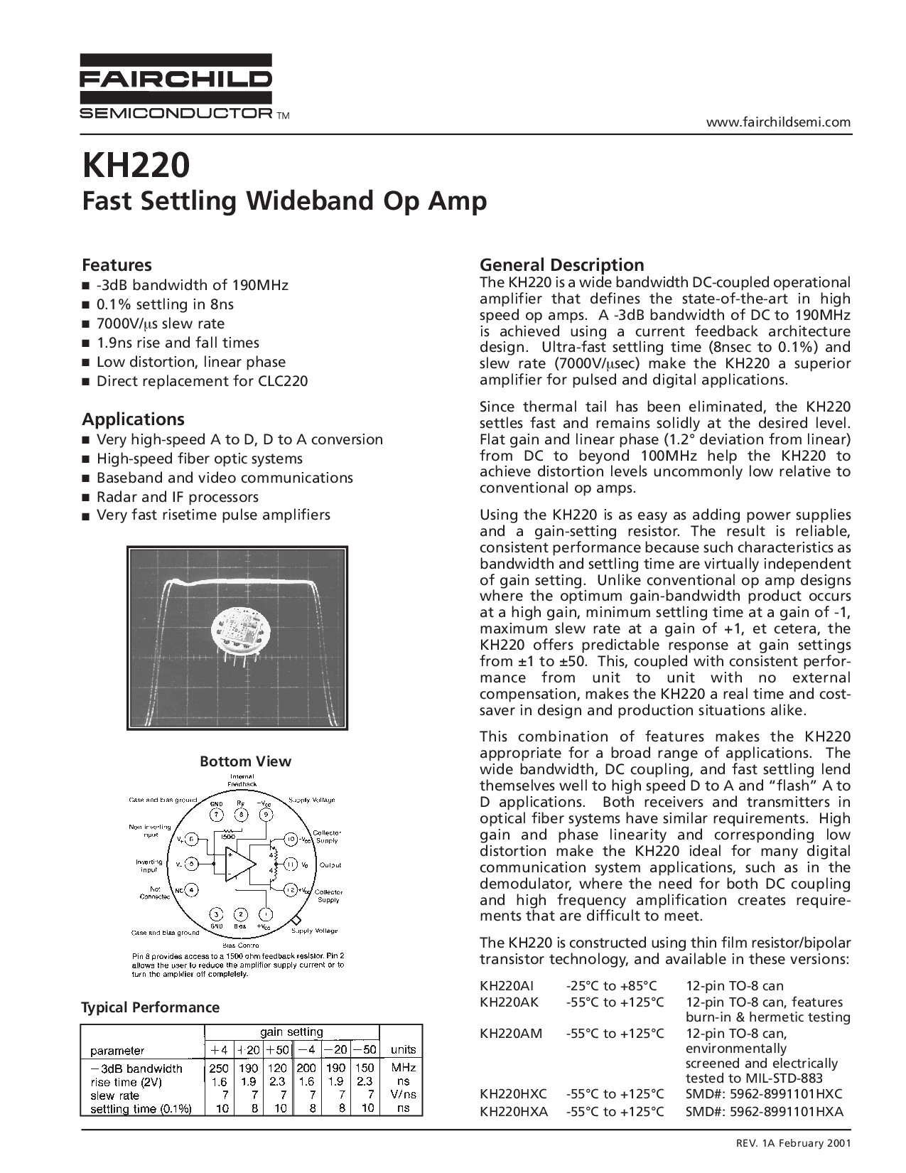 KH220AK -55°c 至 +125°c 12-管脚 至-8 可以, 特点