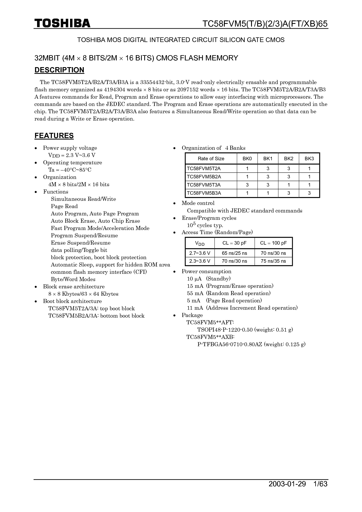 这 tc58fvm5t2a/b2a/t3a/b3a 是 一个 33554432-有点, 3.0-v 只读 电气 可擦除 和 可编程