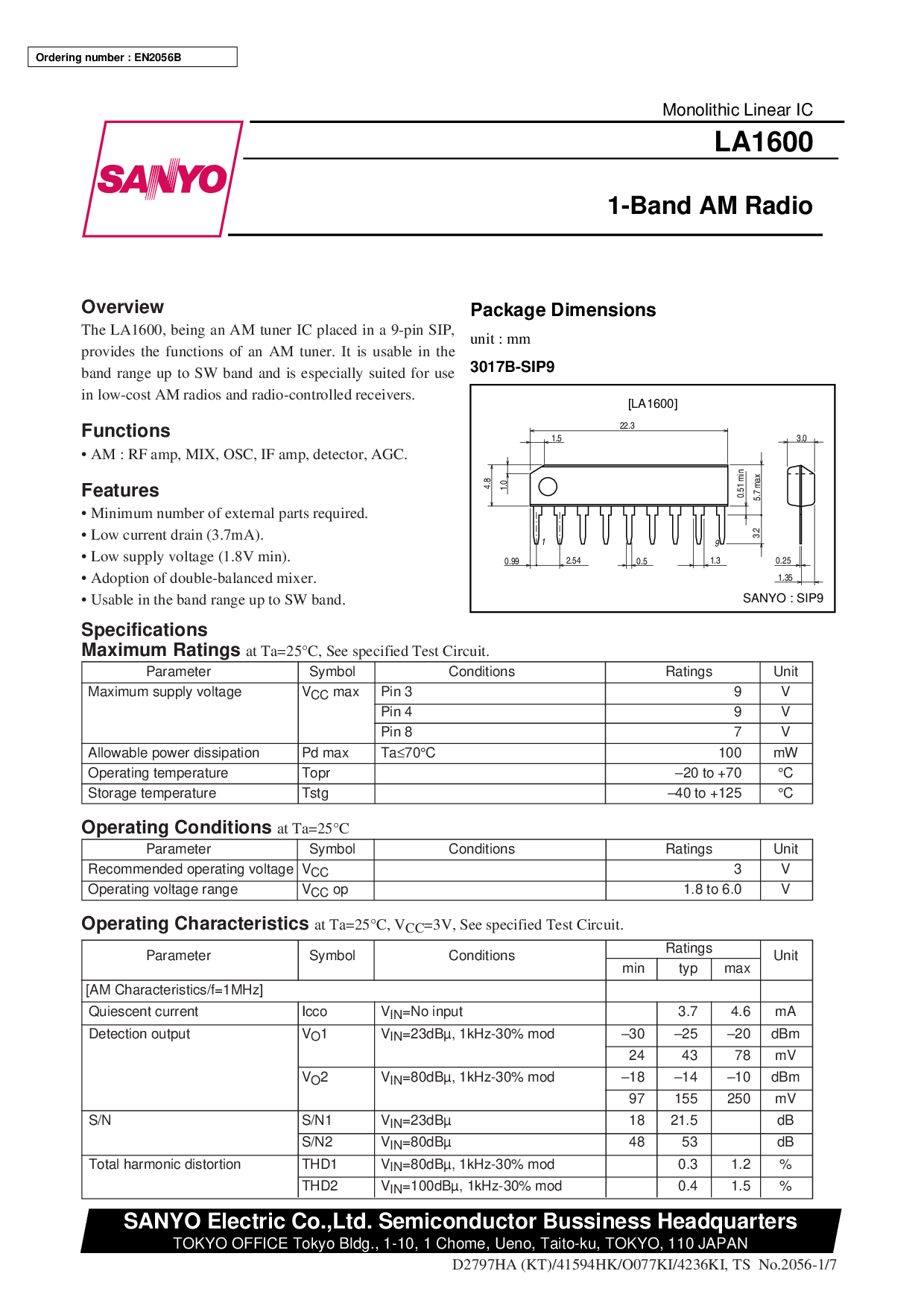 这 la1600, 正在 一个 上午 调谐器 集成电路 已放置 入点 一个 9-管脚 sip,