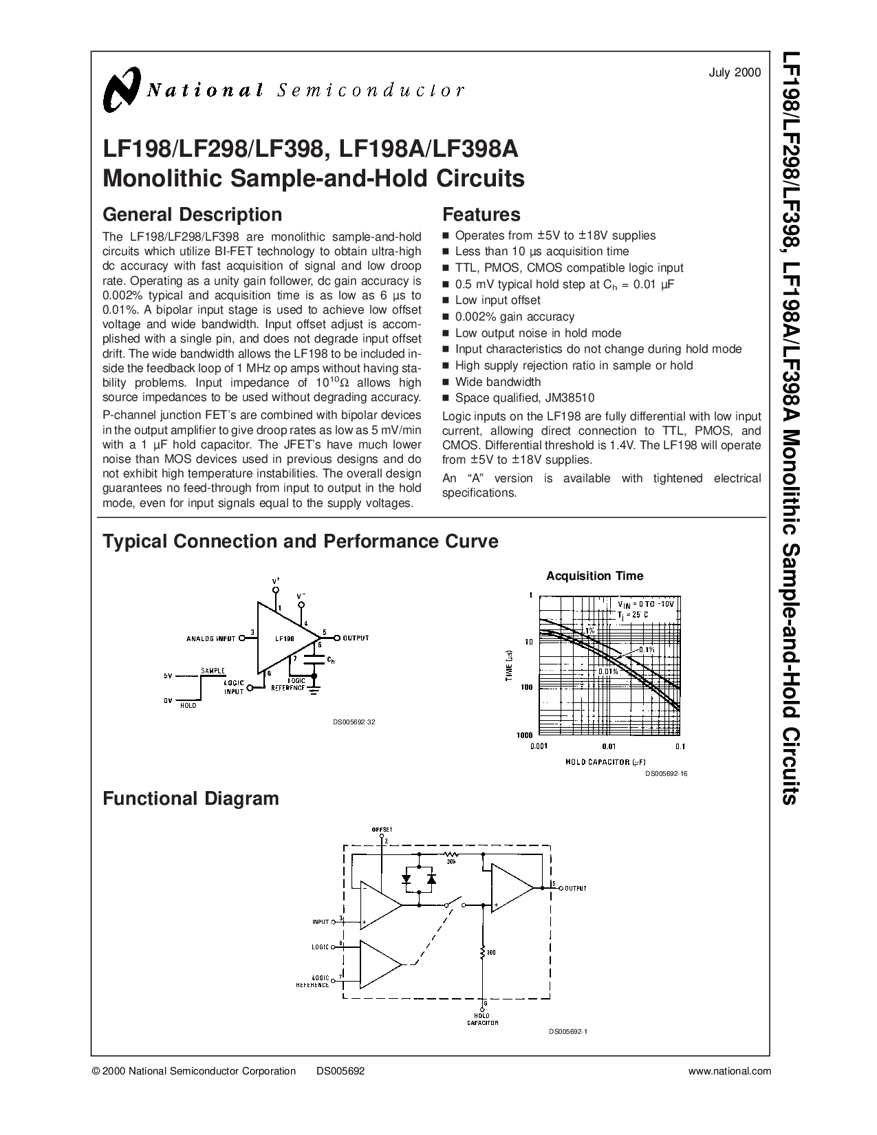 lf198/lf298/lf398, lf198a/lf398a 单片 采样和保持 电路