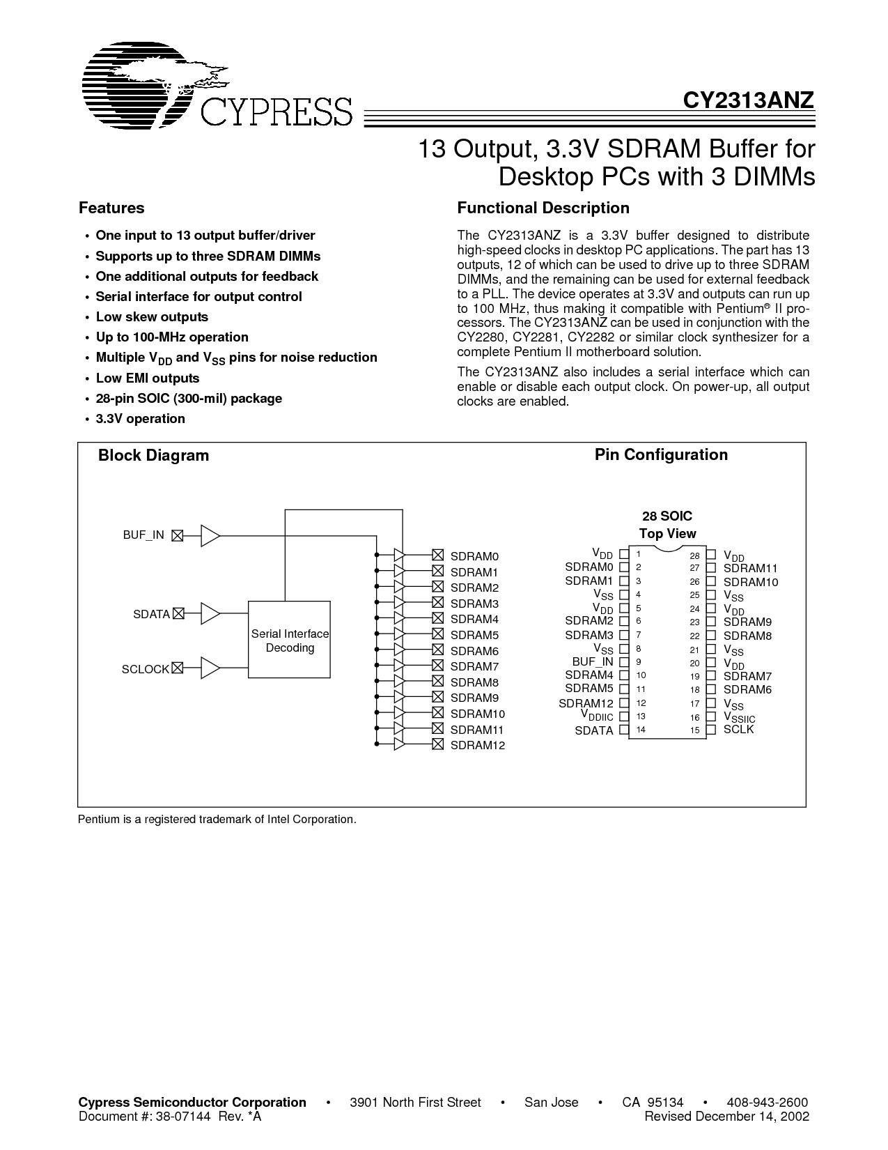 文件 #: 38-07144 rev. *a 修订 12月 14, 2002