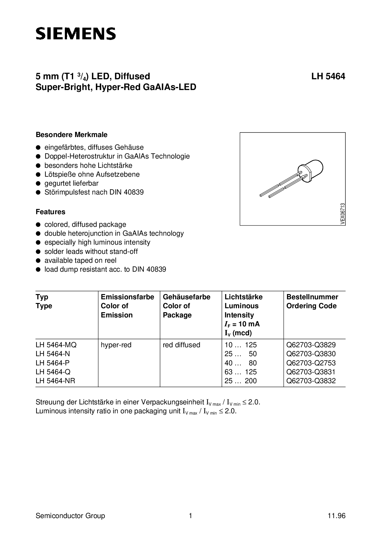 5 mm T1 3/4 LED, Diffused Super-Bright, Hyper-Red GaAIAs-LED